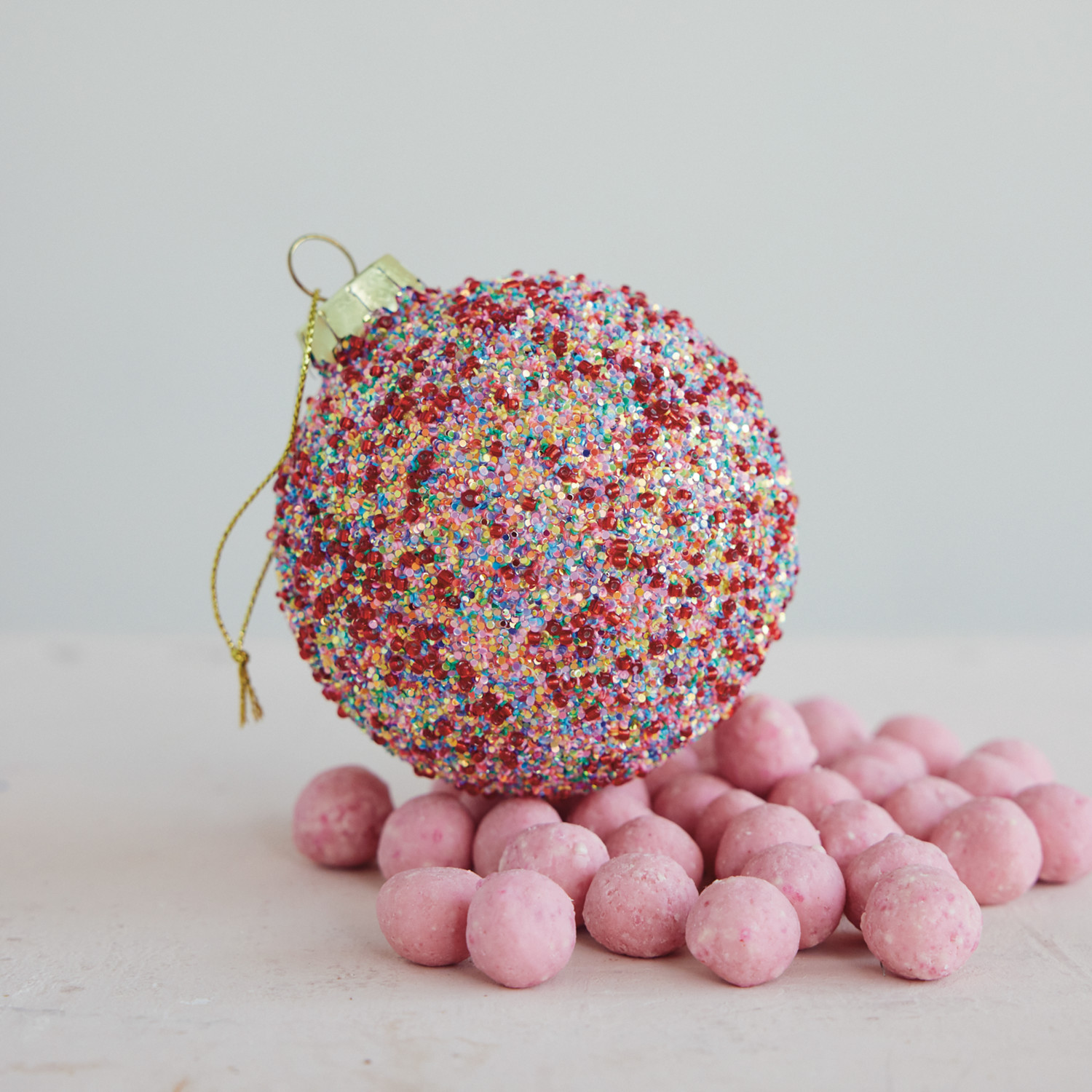 Glass Beaded Ball Ornament with Glitter