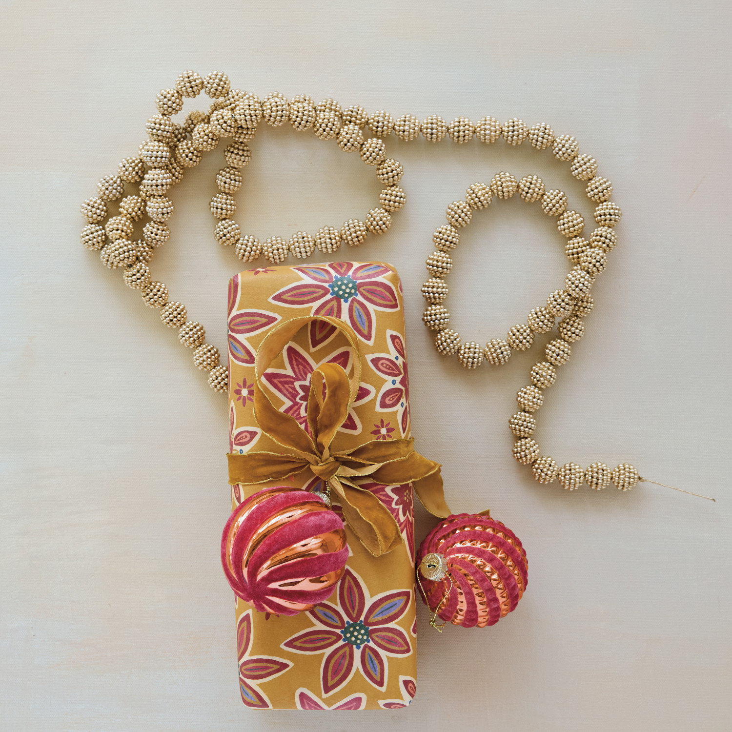 Glass Ball Ornament with Flocked Stripes, Burgundy & Copper Finish, 2 Styles