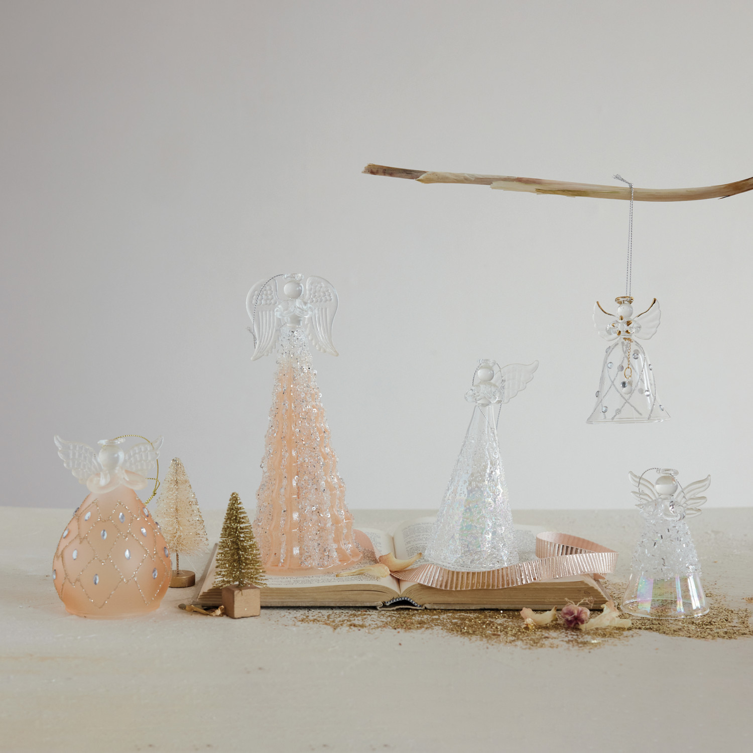 Catalog Name: 3-1/4" Round x 8-1/4"H Mercury Glass Angel Ornament w/ LED Light, Apricot Color (Batteries Included) (Hangs or Sits)