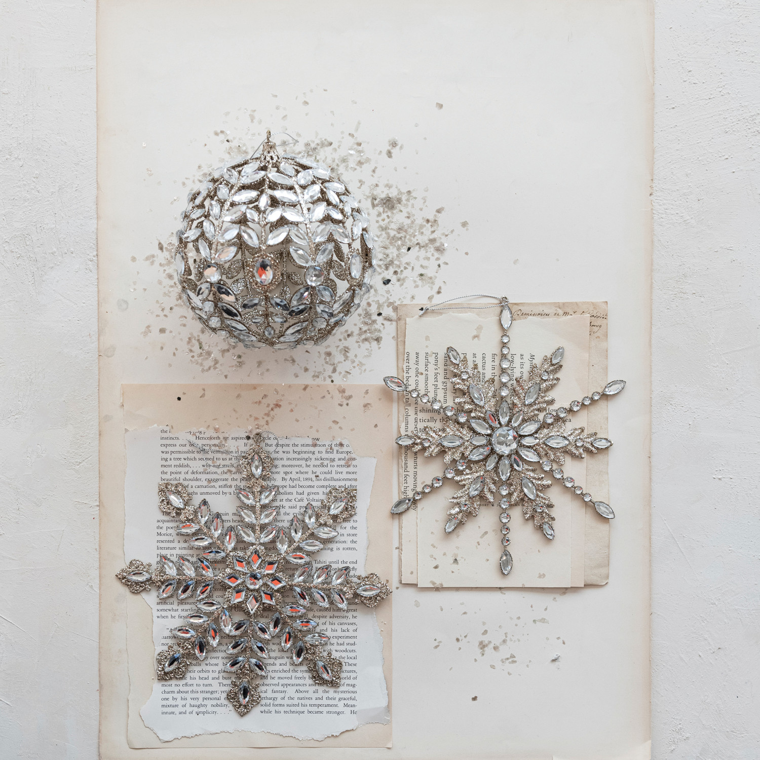Metal Ball Ornament with Acrylic Jewels & Glitter