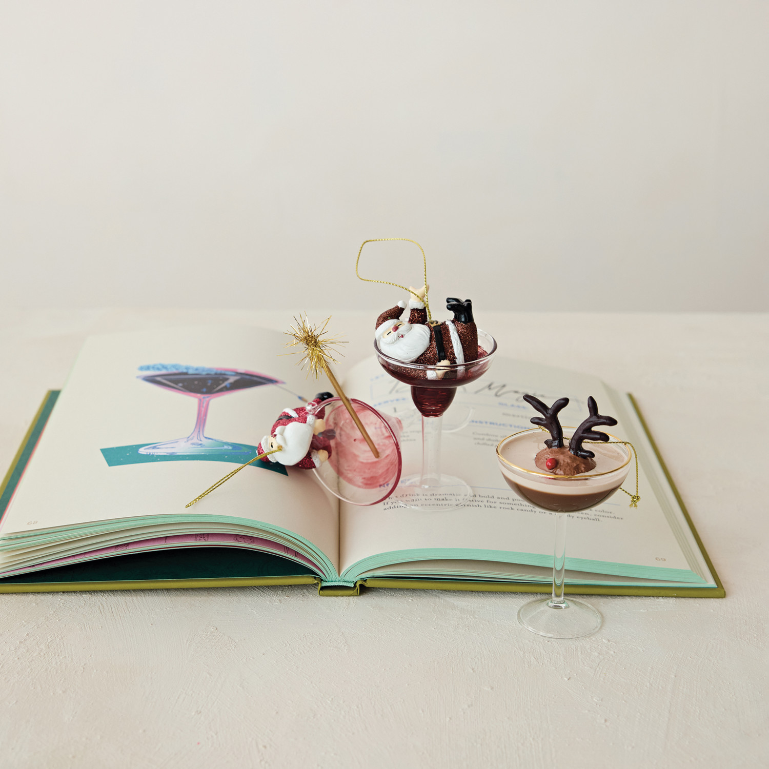 Glass Cocktail Ornament with Tipsy Santa, 2 Styles
