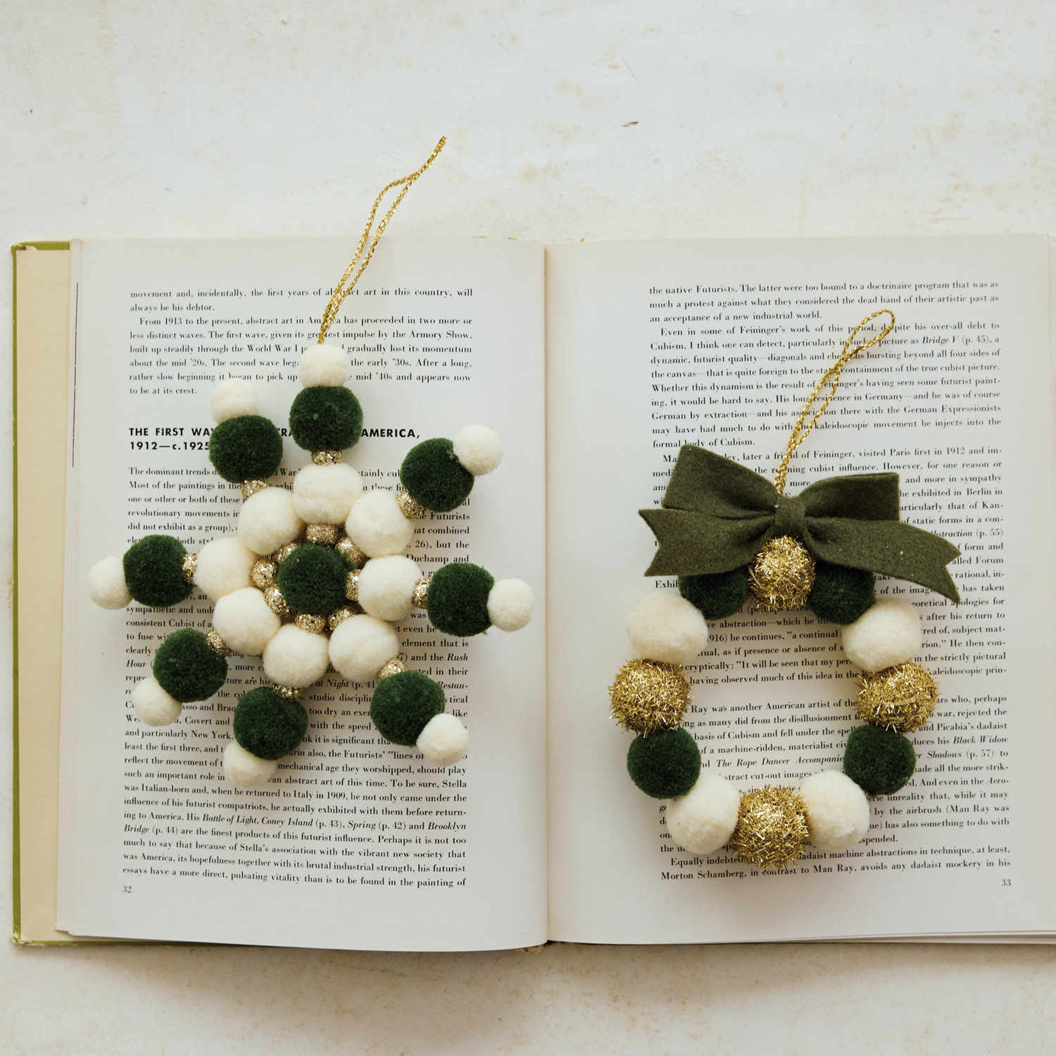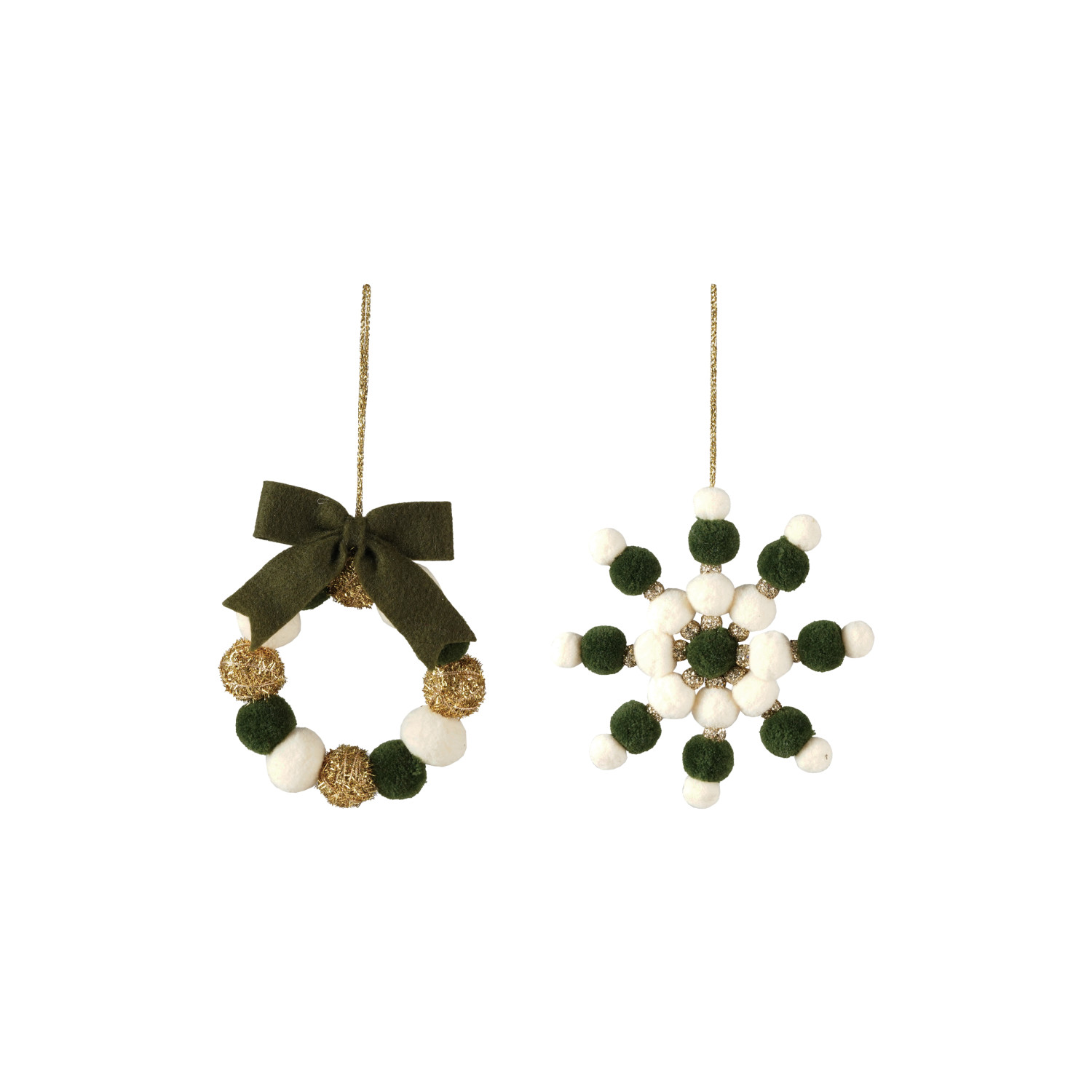 Fabric Pom Pom Snowflake/Wreath Ornament, 2 Styles