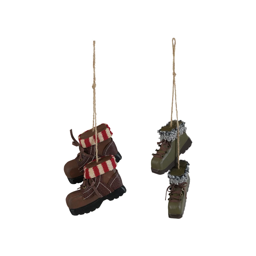 Wood & Knit Fabric Pair of Hiking Boots Ornament, 2 Styles