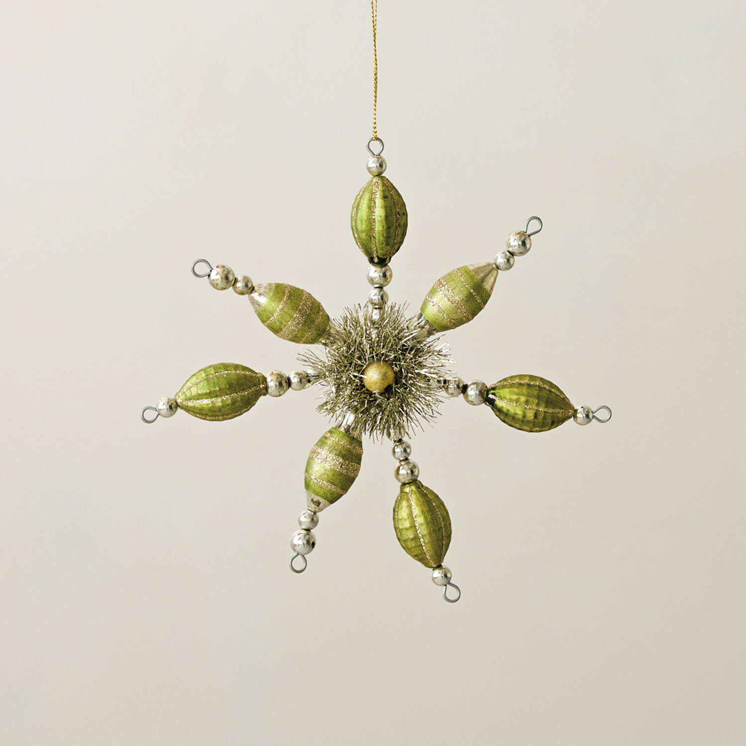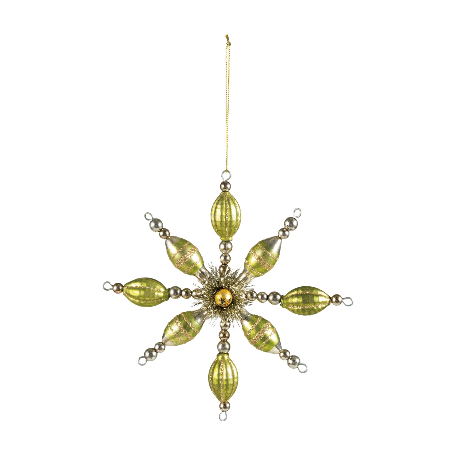 Glass Beaded Snowflake Ornament, Silver Finish & Green