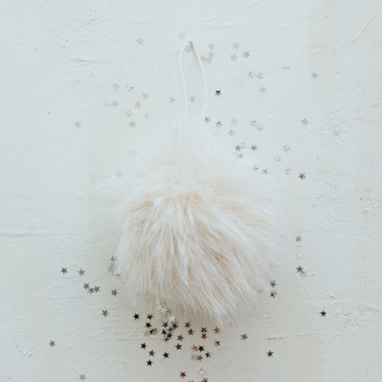 Catalog Name: 4" Round Faux Fur Pom Pom Ornament, White