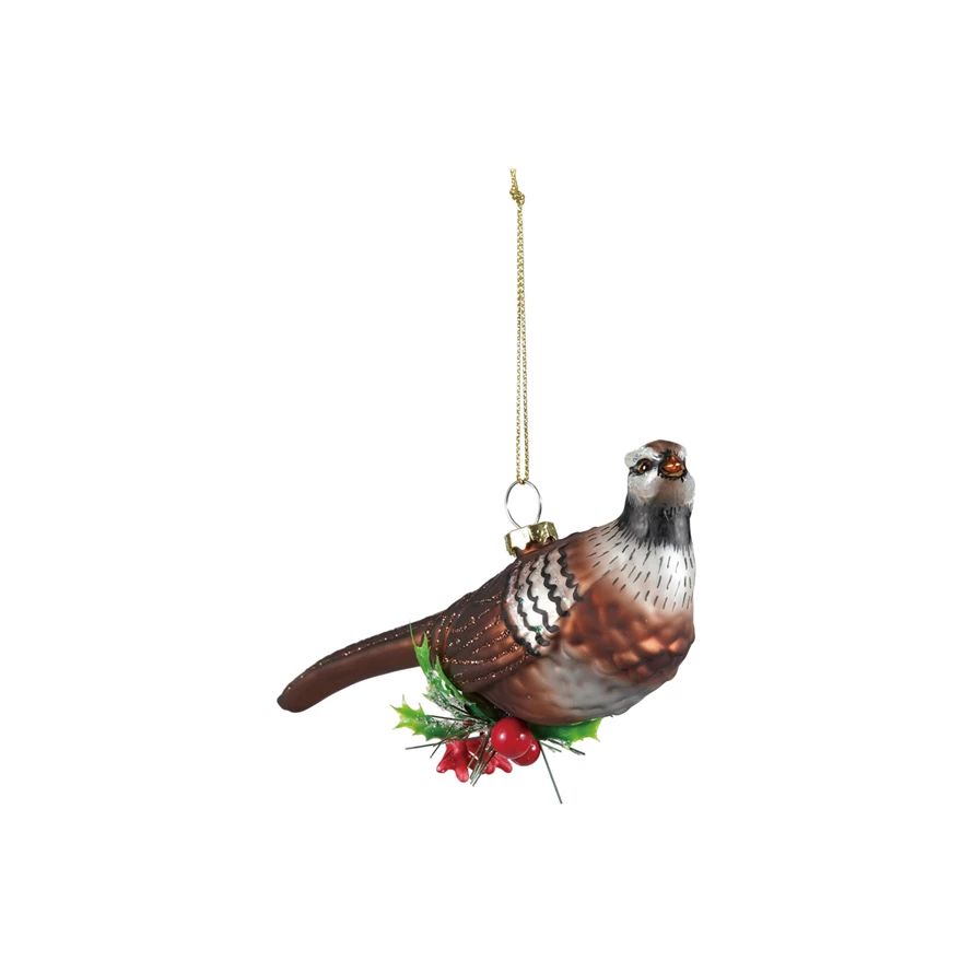 Glass Pheasant Ornament with Botanicals & Glitter ©