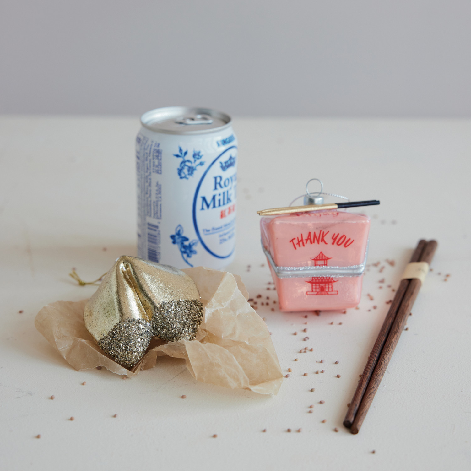 Hand-Painted Glass Take Out Food Ornament with Chopsticks & Glitter "Thank You"