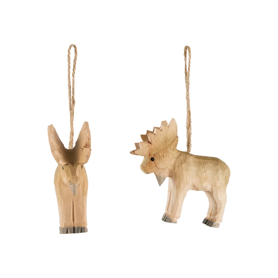 Catalog Name: 3-1/4"L Hand-Carved Wood Moose Ornament, Natural