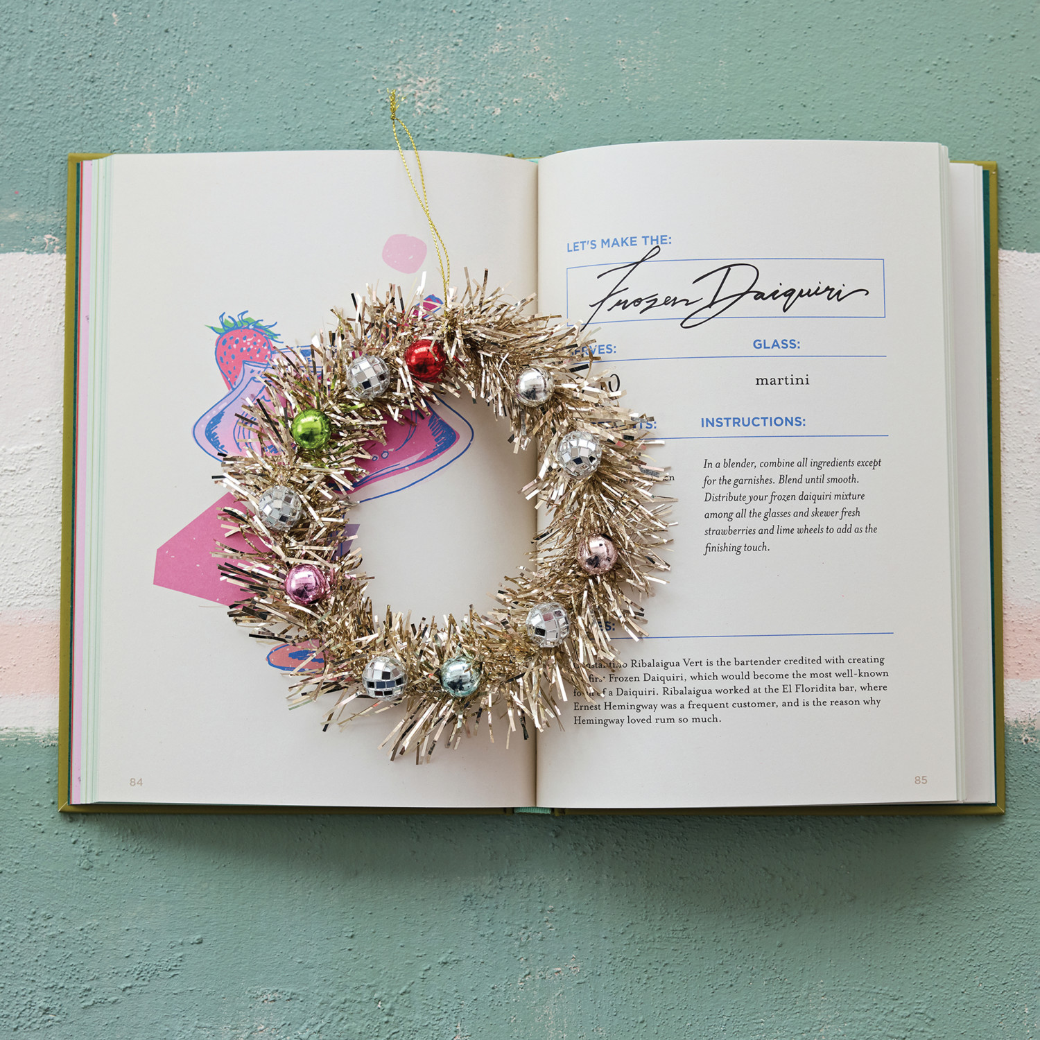 Tinsel Wreath Ornament with Mirror Balls & Ornaments