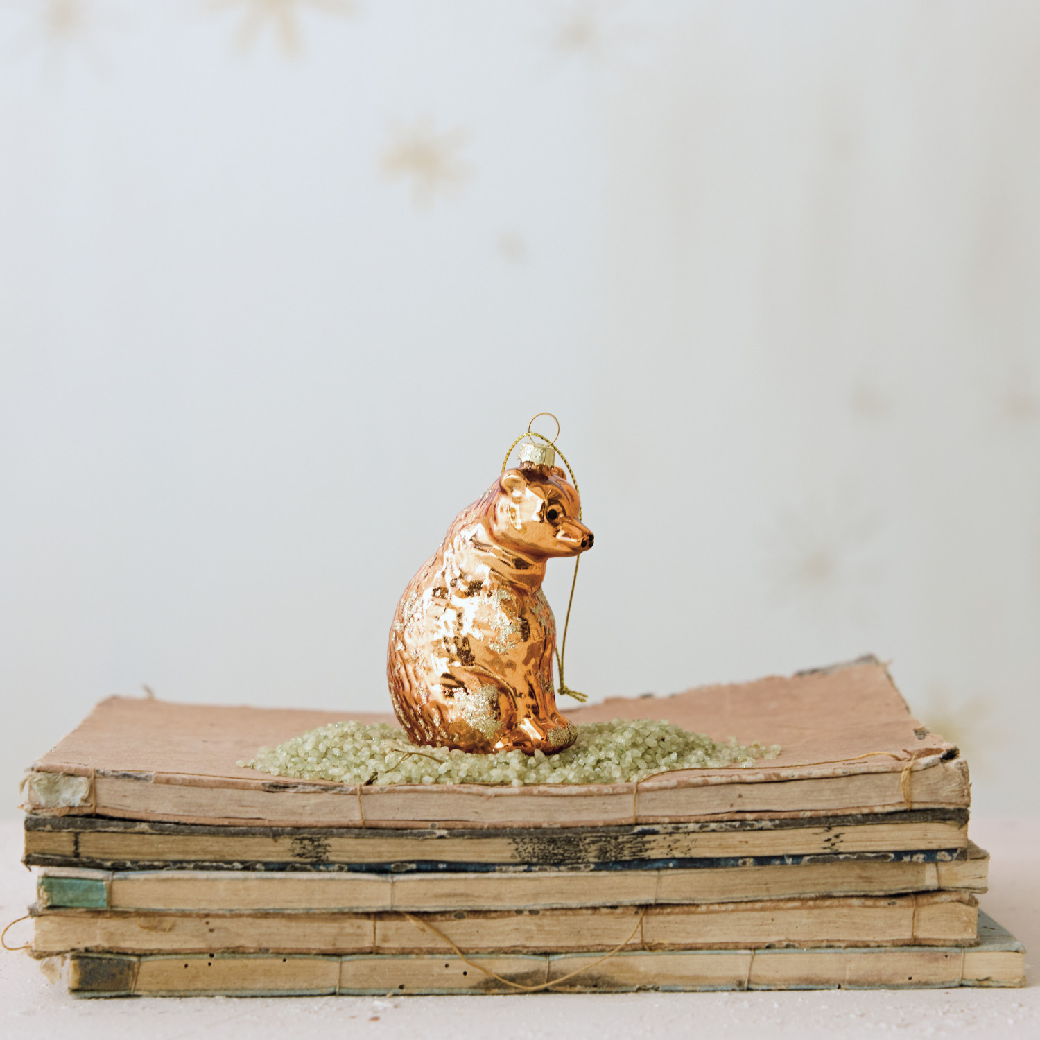 Catalog Name: 3-3/4"H Mercury Glass Bear Ornament w/ Glitter, Brown
