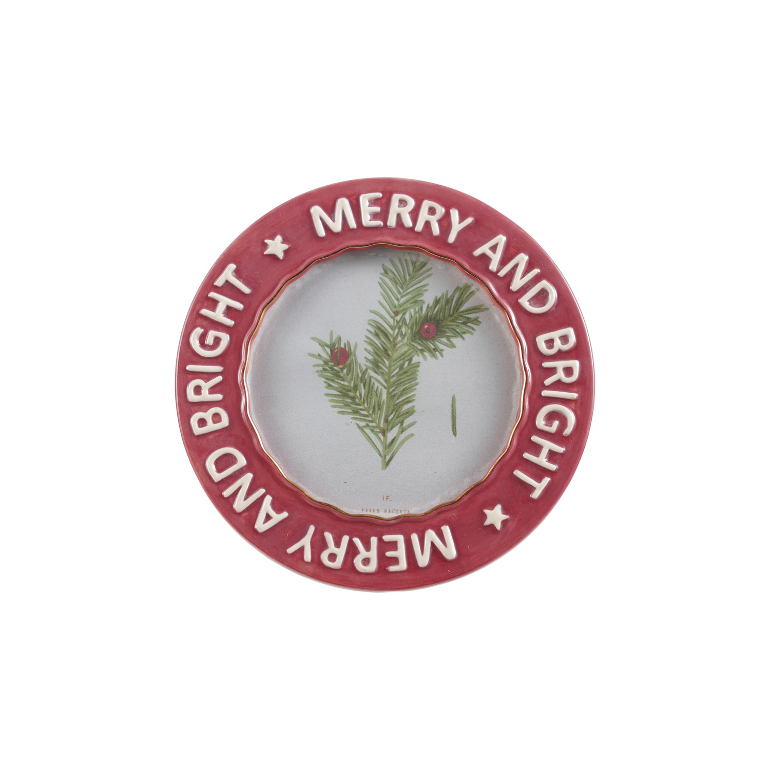 Catalog Name: 6" Round Hand-Painted Embossed Stoneware Photo Frame "Merry And Bright", Red & White (Holds 4" x 4" Photo)