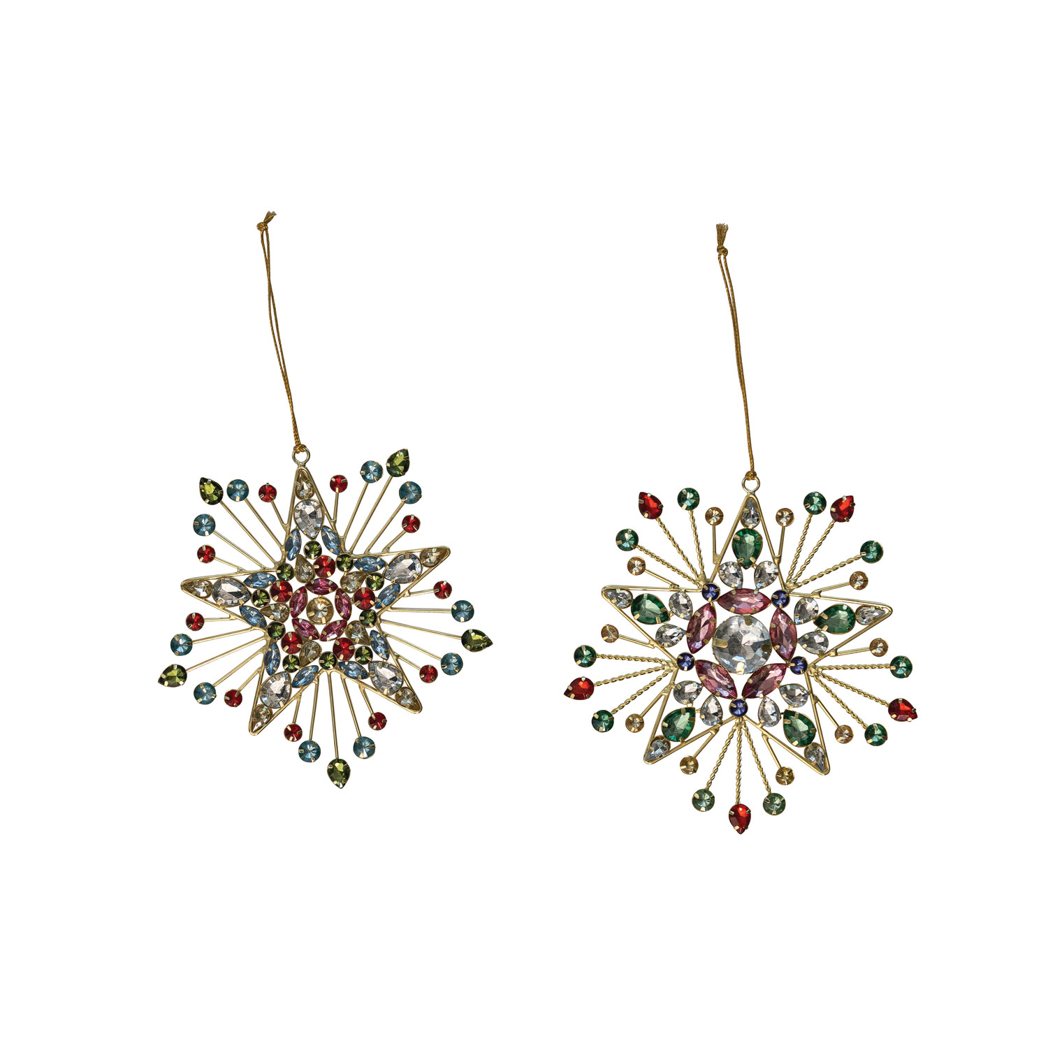6"H Metal Star Ornament with Acrylic Jewels, Multi Color, 2 Styles