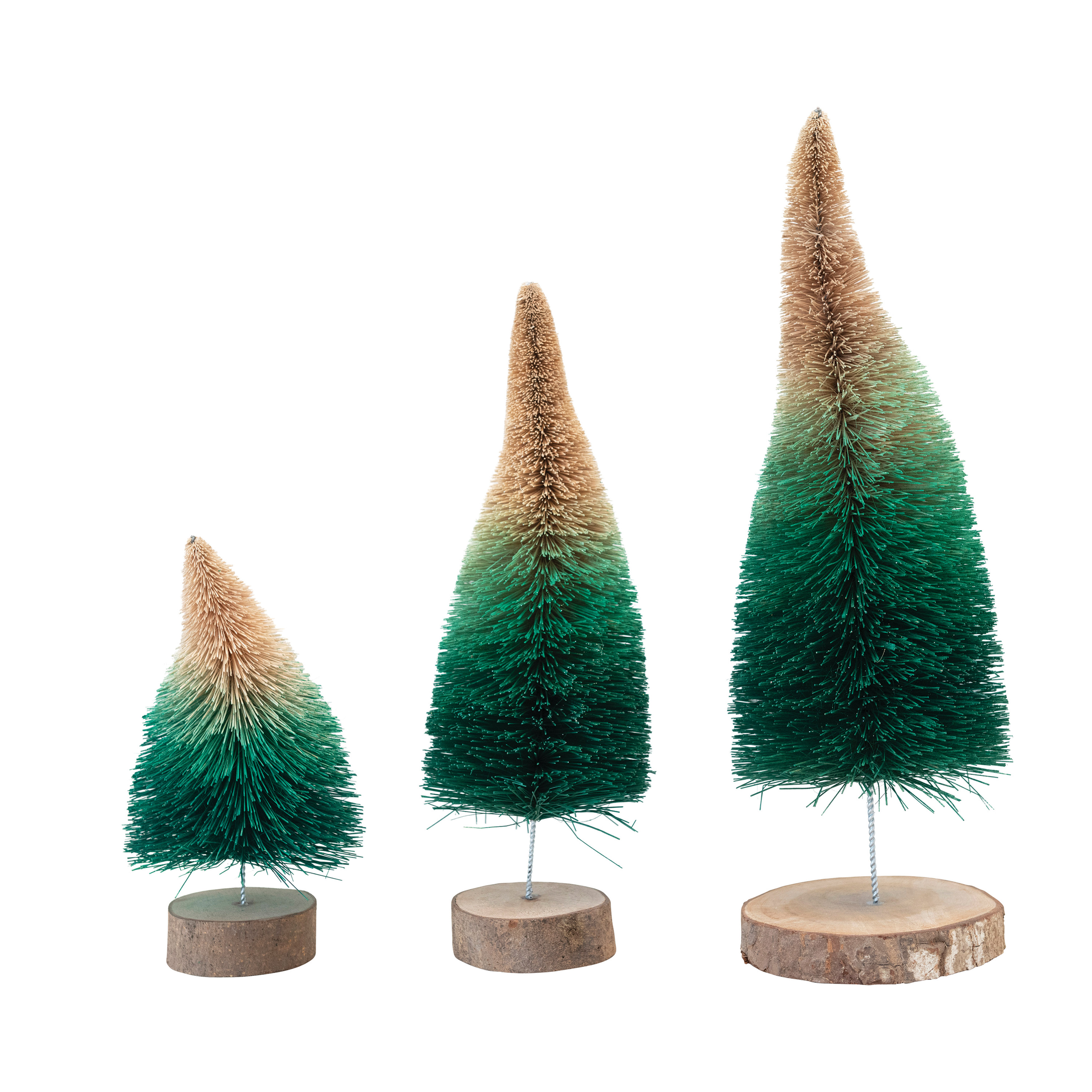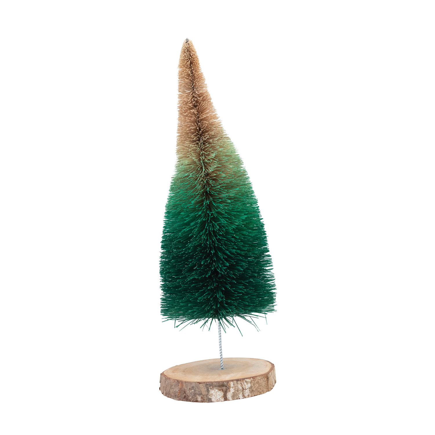 Catalog Name: 5" Round x 16"H Curved Sisal Bottle Brush Tree with Wood Base, Green Ombre