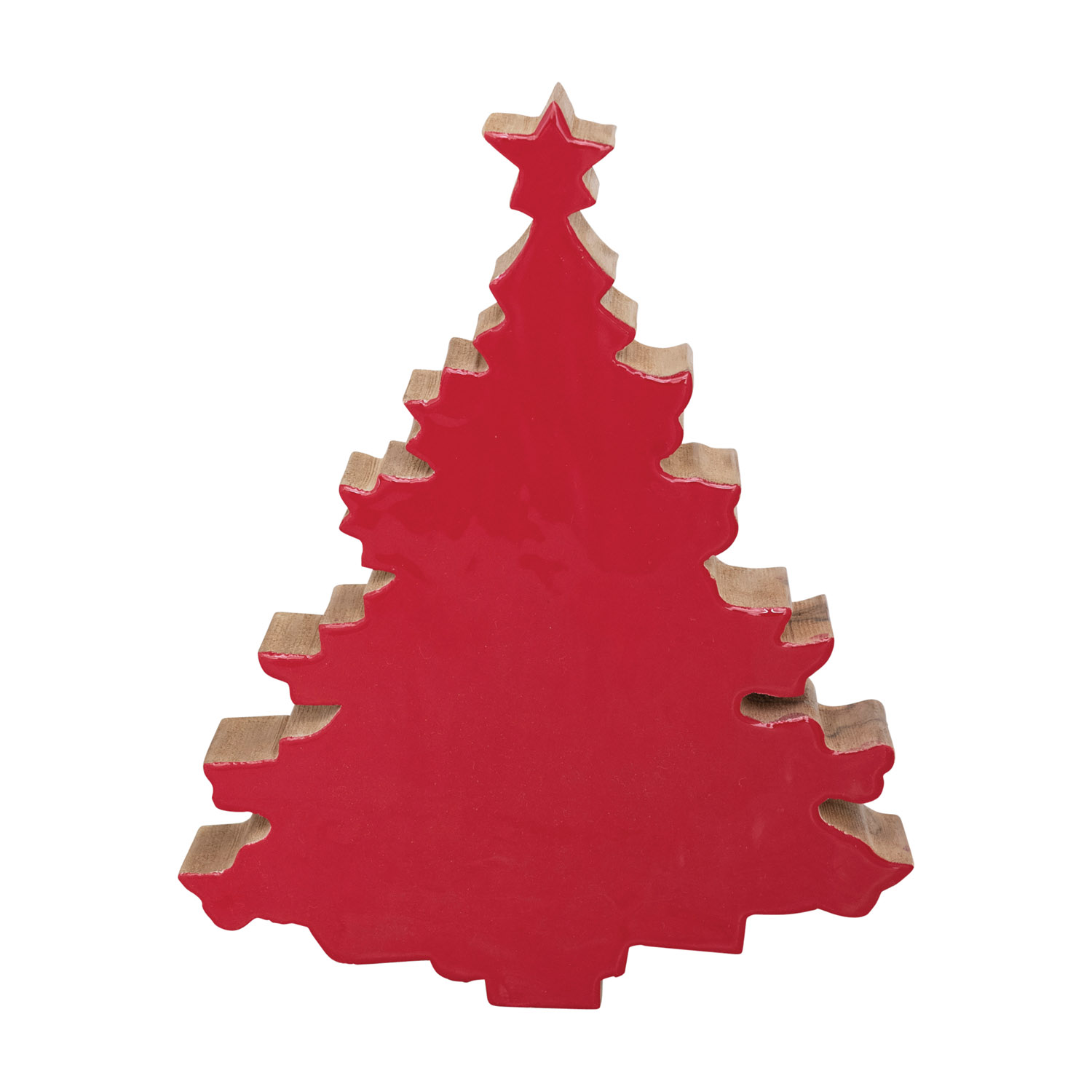 Catalog Name: 7"L x 1-1/2"W x 8-1/4"H Enameled Mango Wood Christmas Tree, Red
