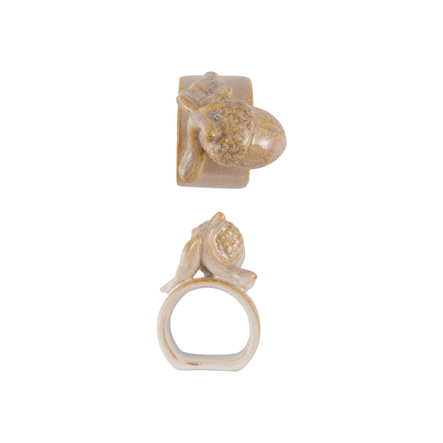 Catalog Name: 2"W x 3"H Stoneware Napkin Ring w/ Acorn, Reactive Glaze, Cream Color (Each One Will Vary)