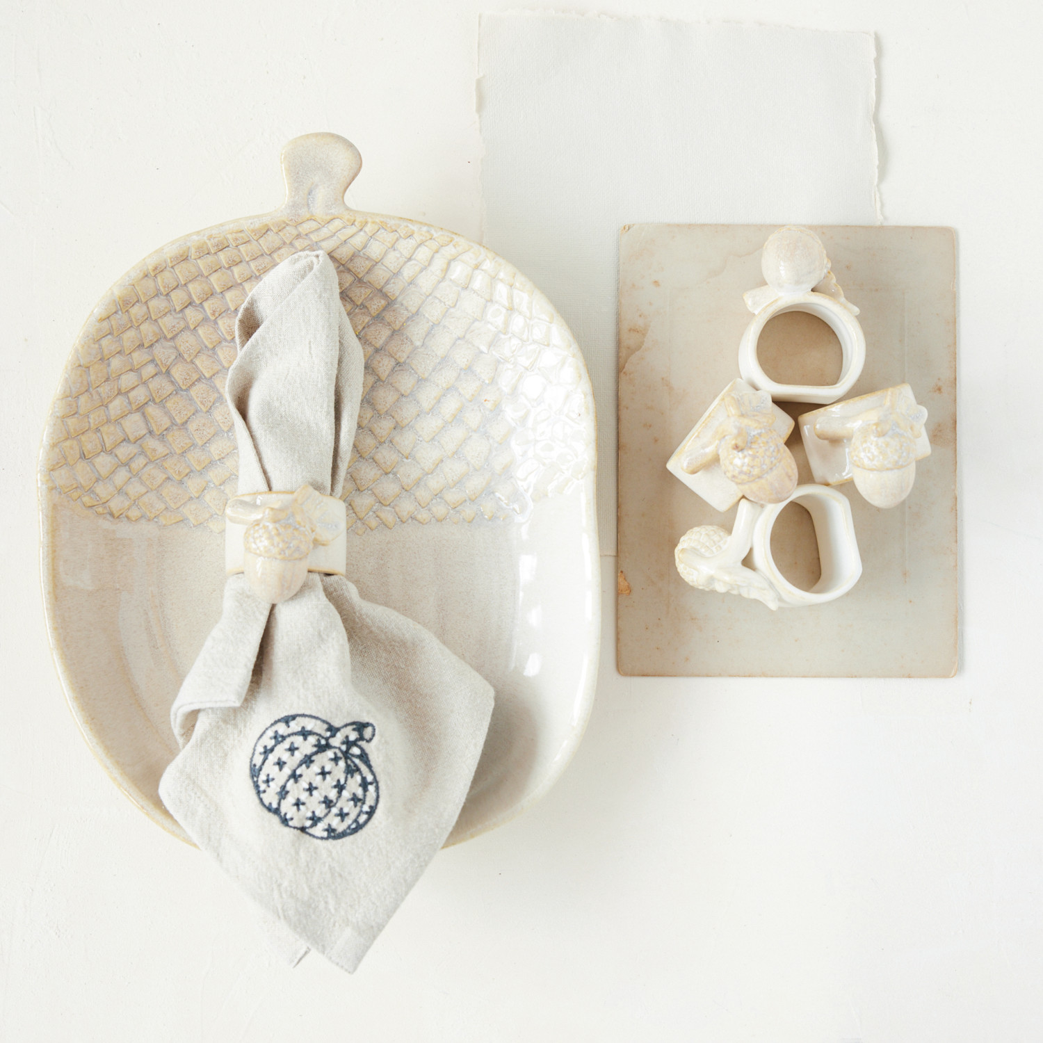 Stoneware Napkin Ring with Acorn (Each One Will Vary)