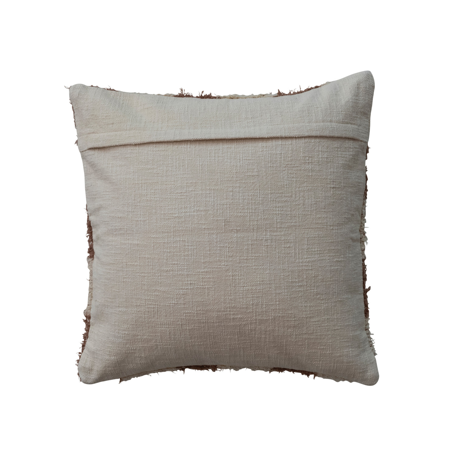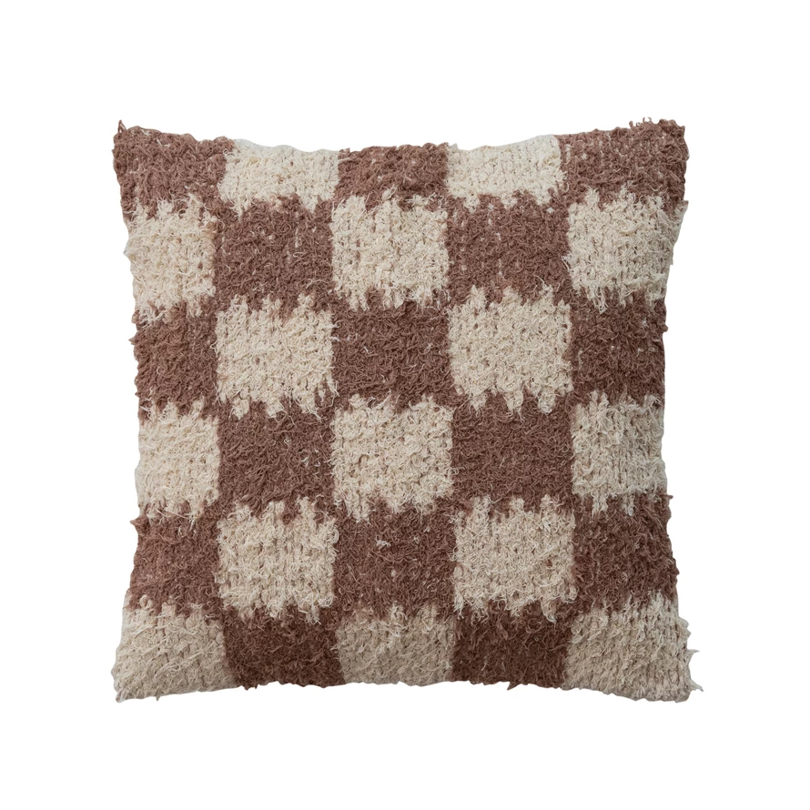 Catalog Name: 20" Square Cotton Slub Pillow w/ Check Pattern, Natural & Brown