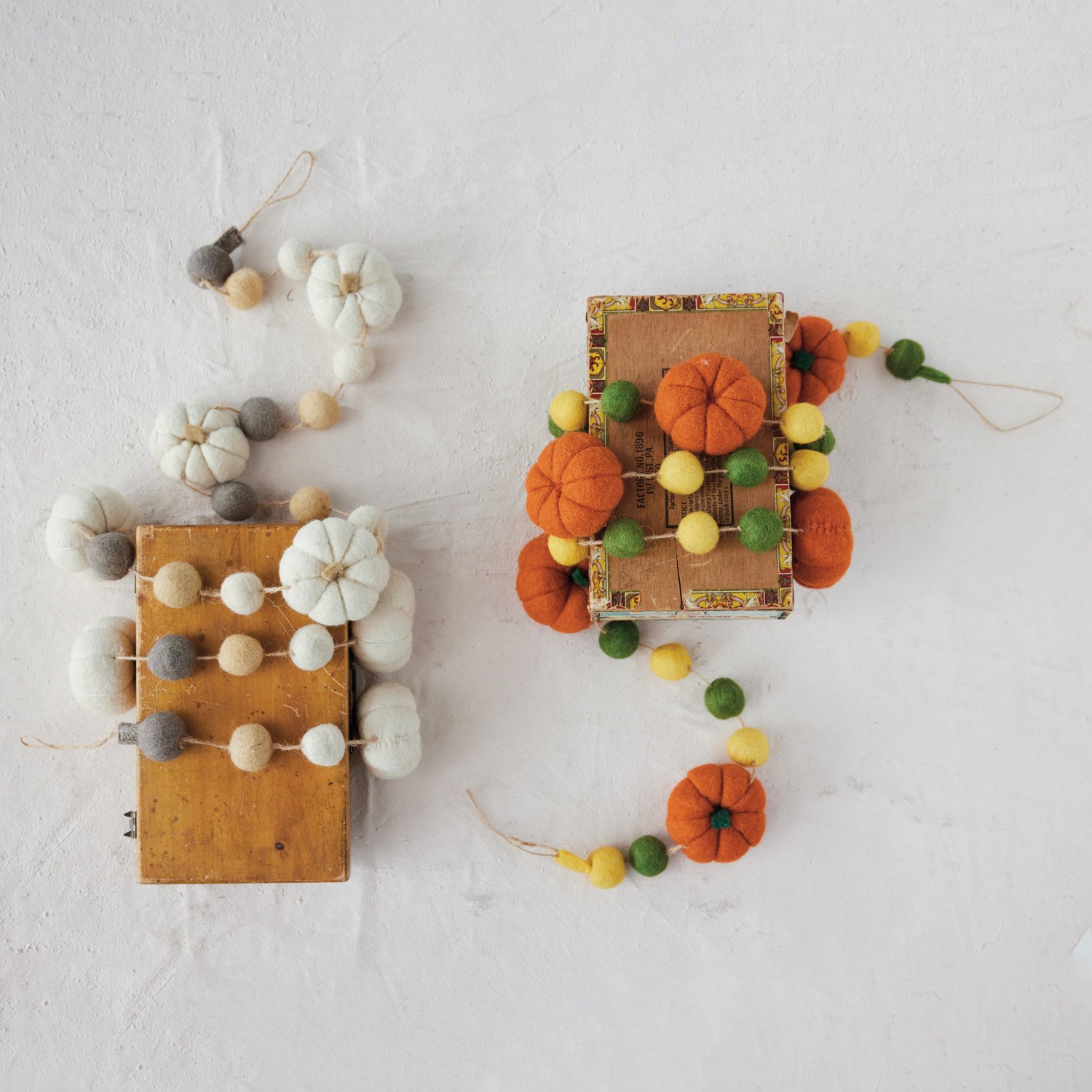Catalog Name: 72"L x 3"H Handmade Wool Felt Pumpkin & Ball Garland w/ Jute Cord, Orange, Mustard Color & Green