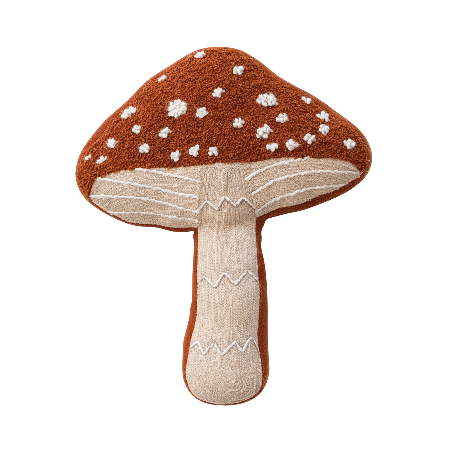 Cotton & Linen Mushroom Shaped Pillow with Embroidery, Beads & Cotton Velvet Back