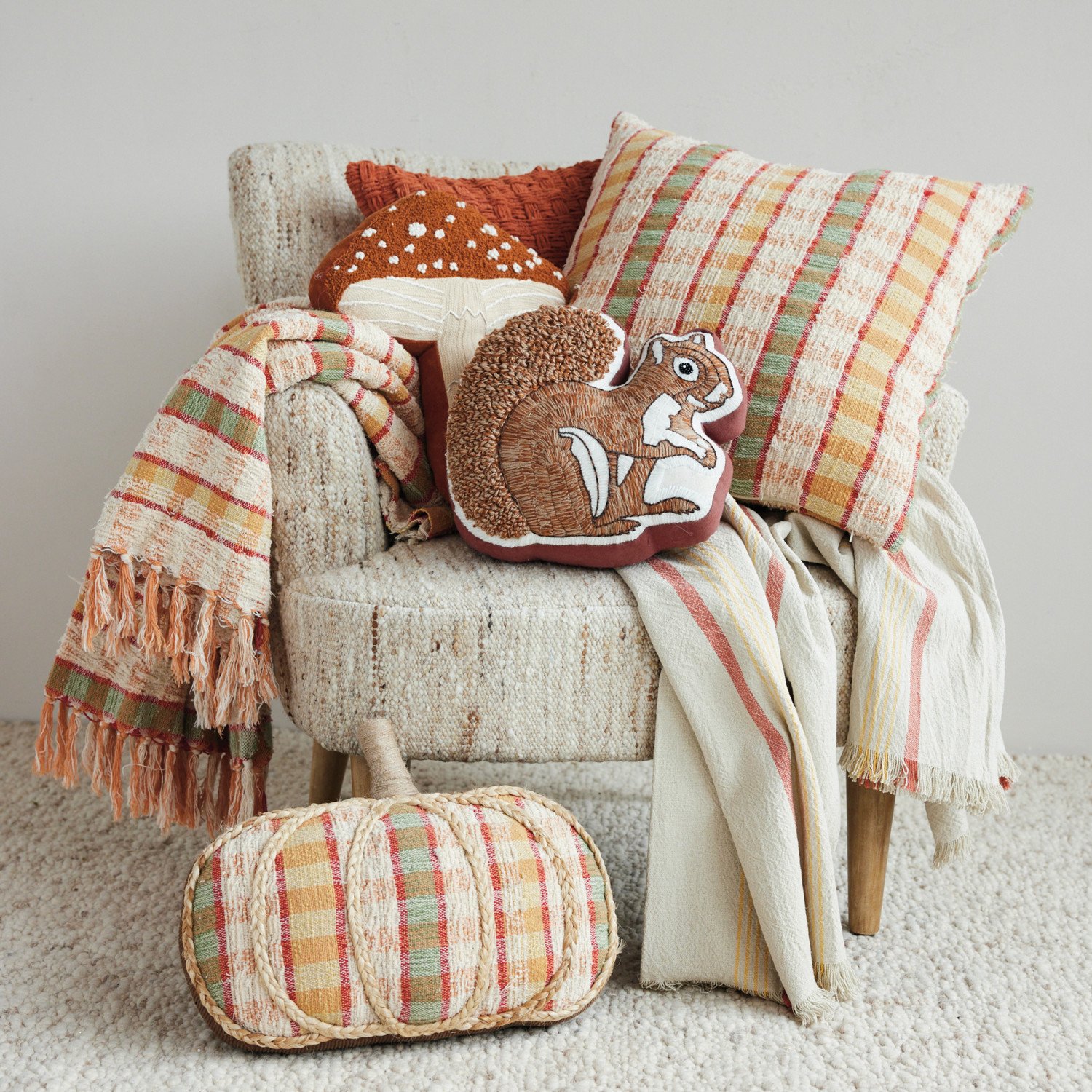 Cotton & Linen Embroidered Squirrel Shaped Pillow with Tufted Tail
