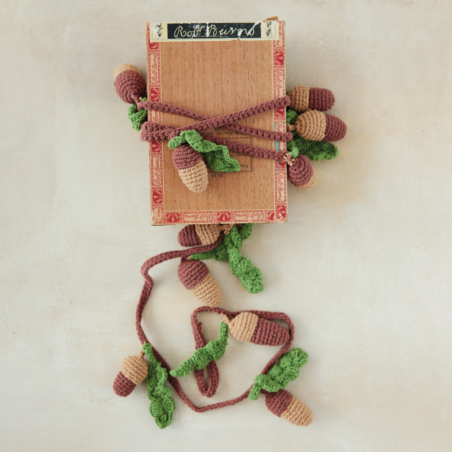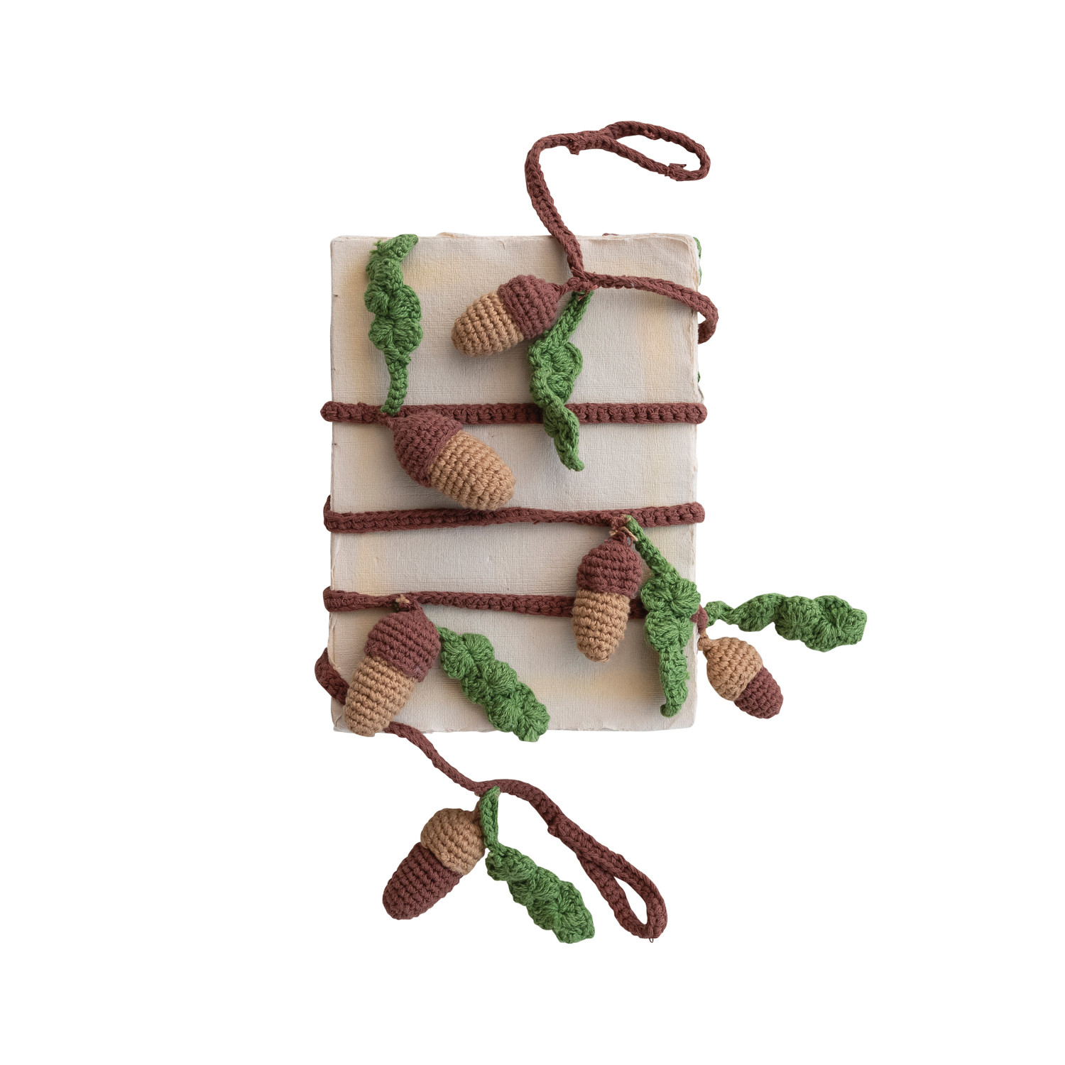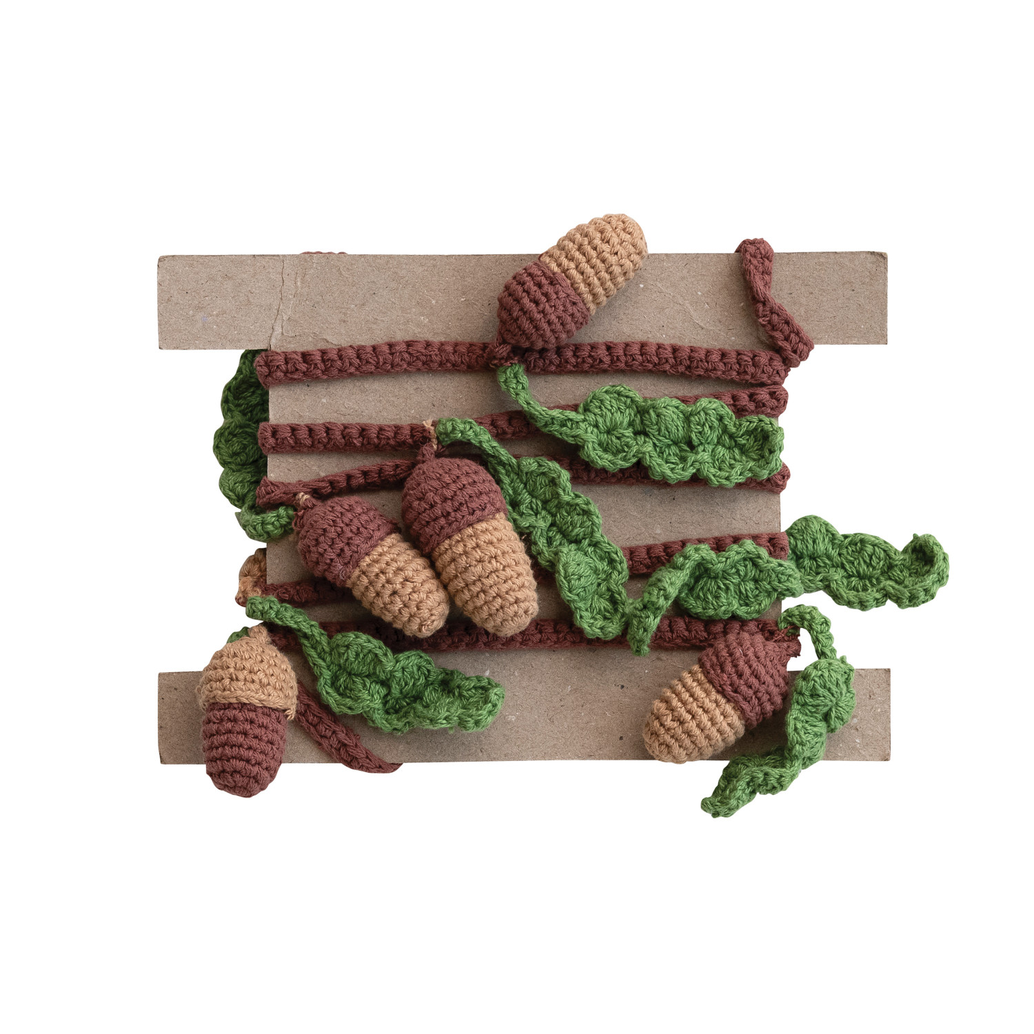 Cotton Crocheted Acorns & Leaves Garland, Brown, Tan Color & Green