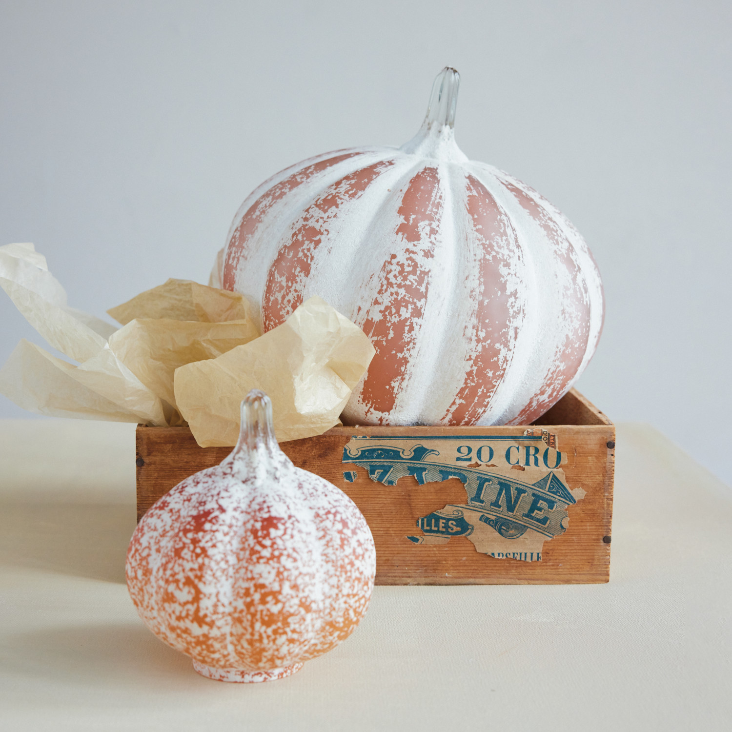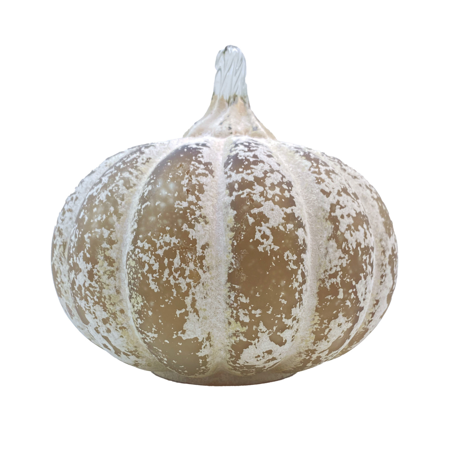 Hand-Blown Glass Pumpkin, Frosted Finish, Orange Color (Each One Will Vary)