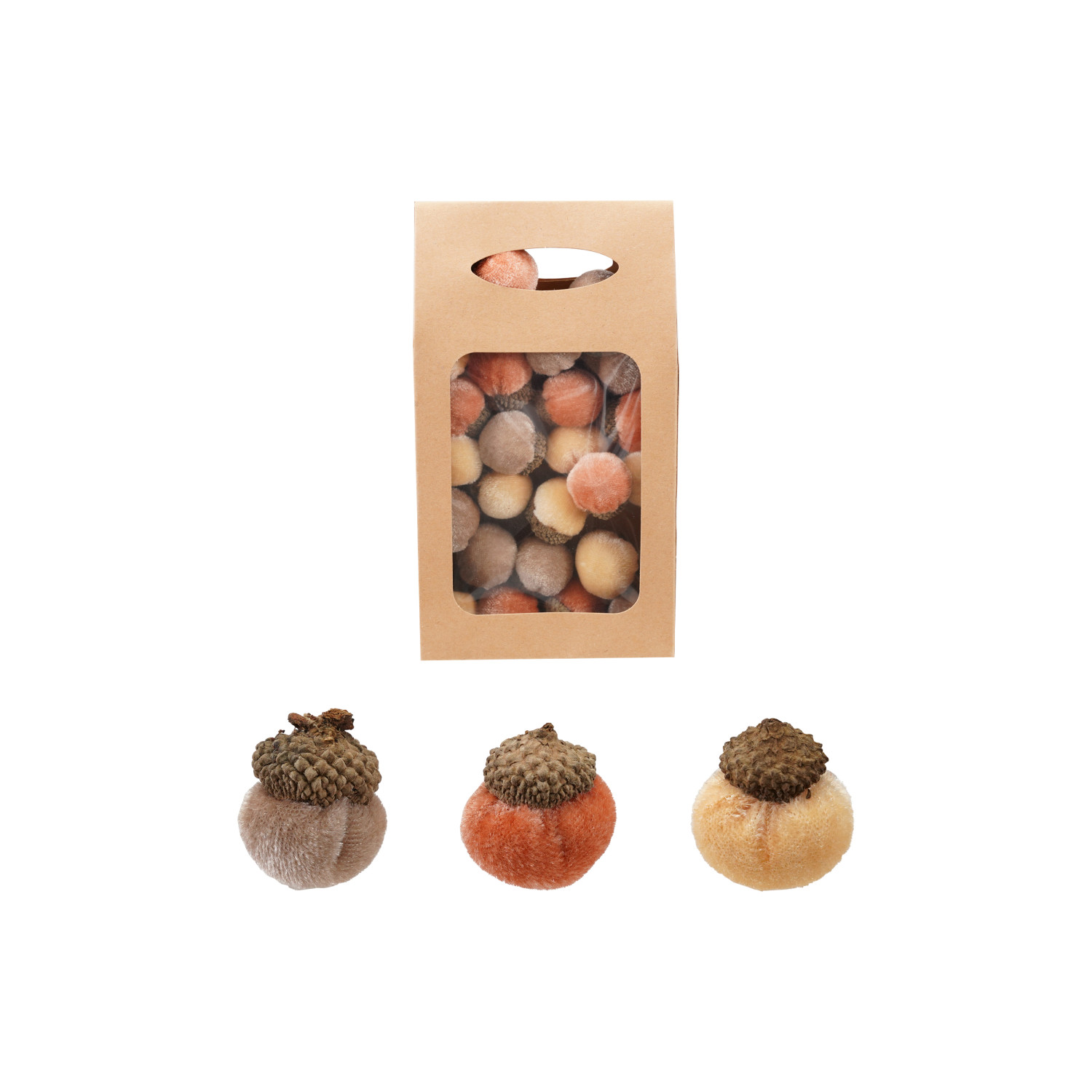 Catalog Name: Approximately 1-1/2"H Velvet Acorn Scatter in Bag, Grey, Rust & Cream Color (Contains 24 Pieces)