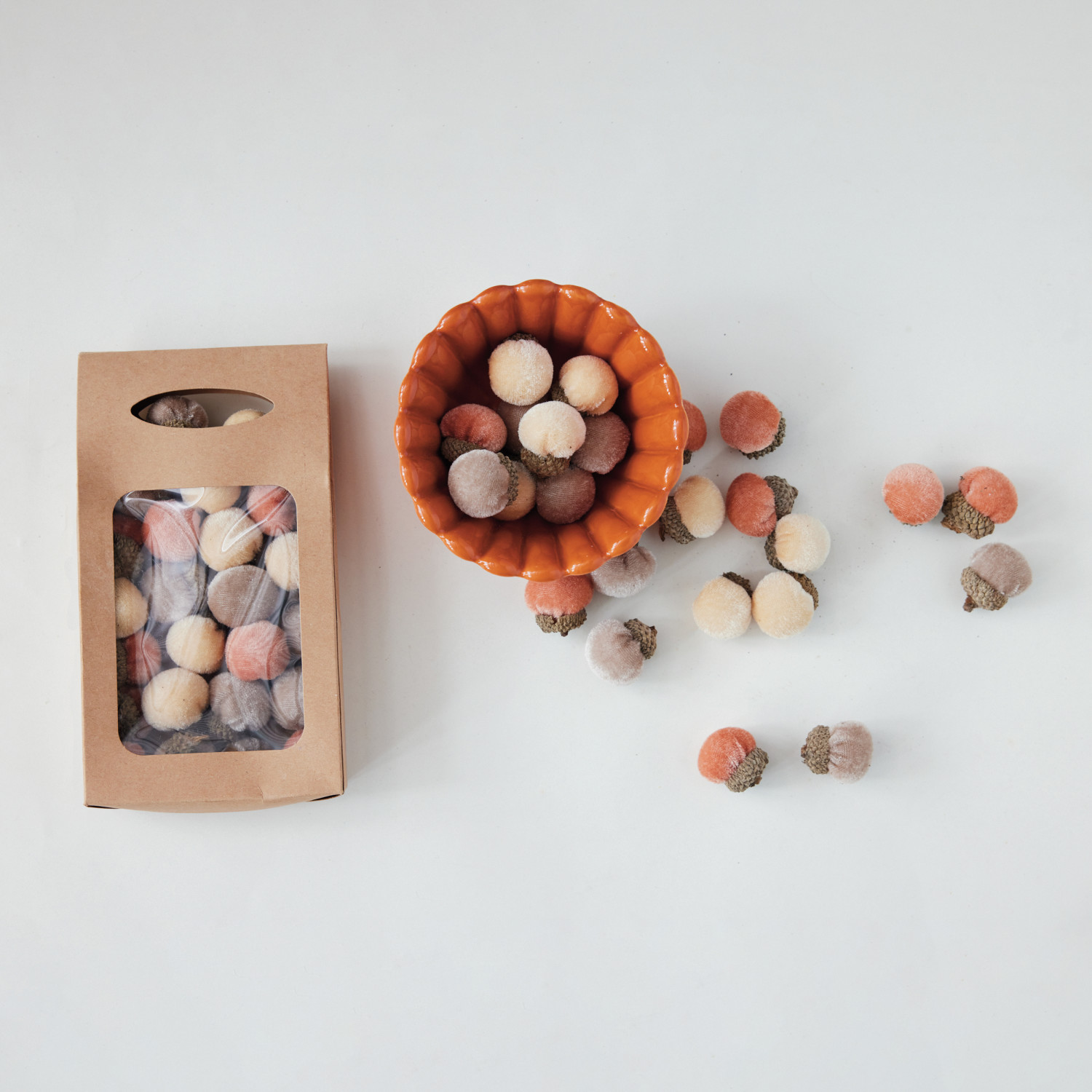 Velvet Acorn Scatter in Bag, Grey, Rust & Cream Color (Contains 24 Pieces)