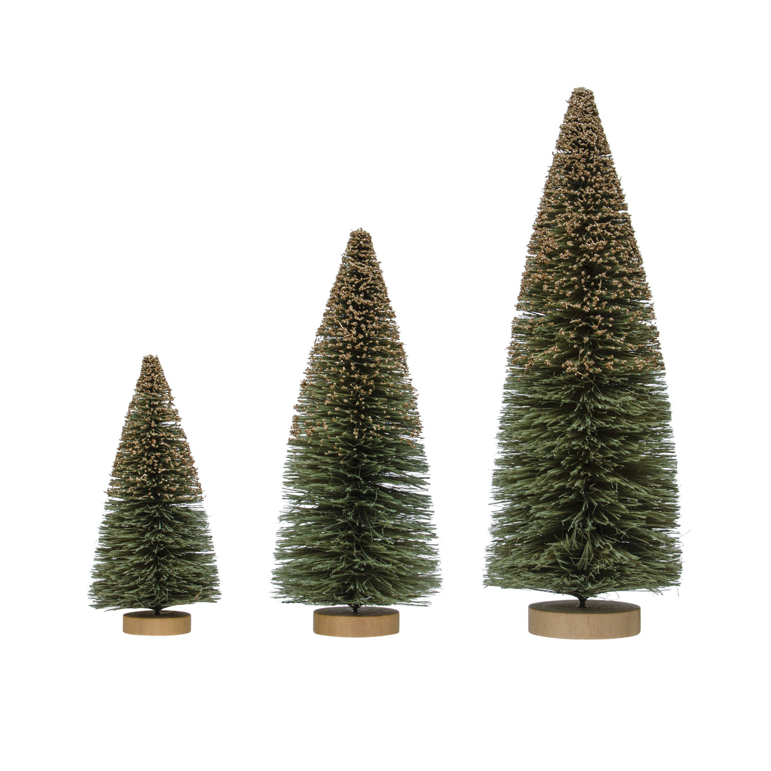 Catalog Name: 4-1/4" Round x 12"H Sisal Bottle Brush Tree w/ Glitter & Wood Base, Grey
