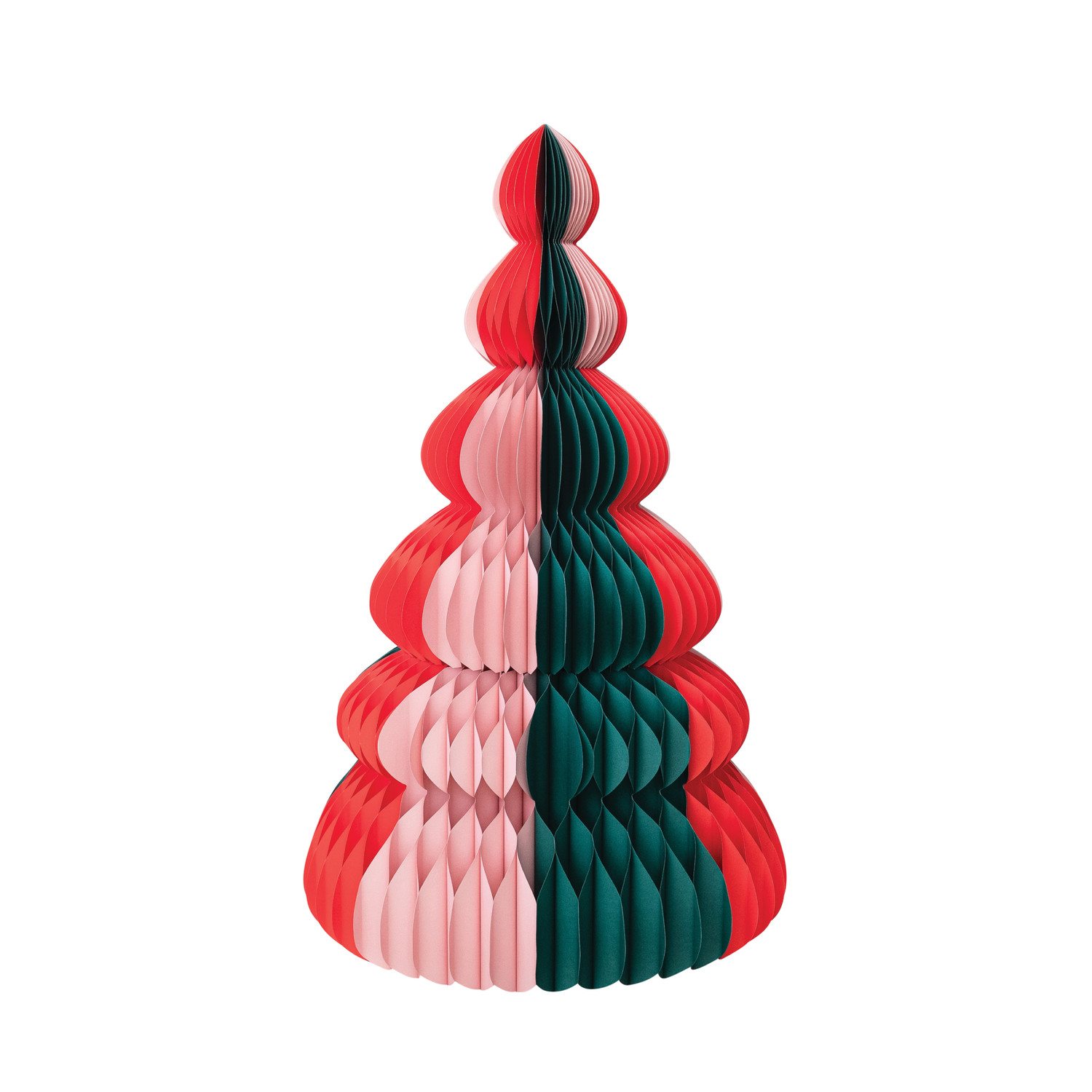 Catalog Name: 39" Round x 60"H Handmade Recycled Paper Folding Honeycomb Tree, Red, Green & Pink, KD