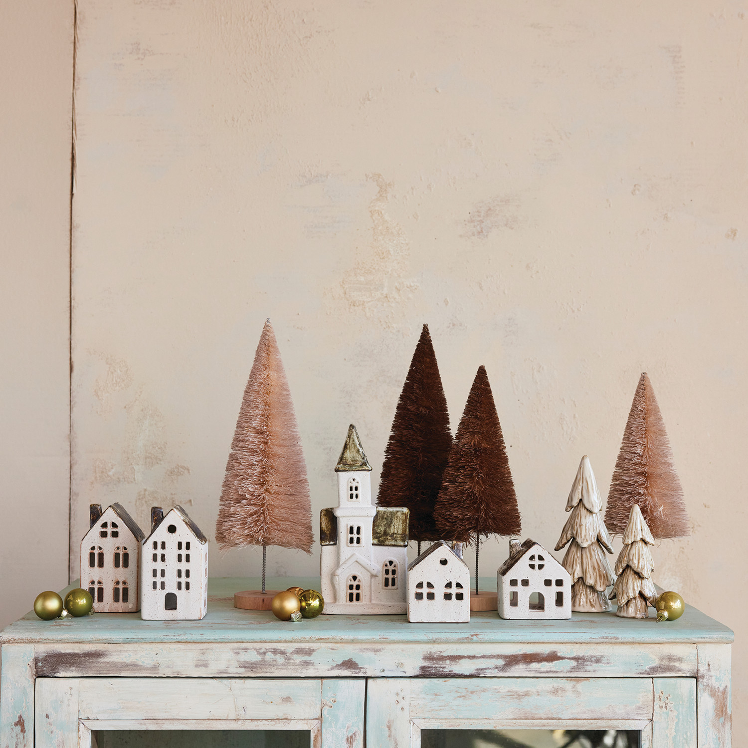 Catalog Name: 3"L x 2-1/2"W x 3-3/4"H Stoneware House, Reactive Glaze, White & Brown, 2 Styles (Each One Will Vary)