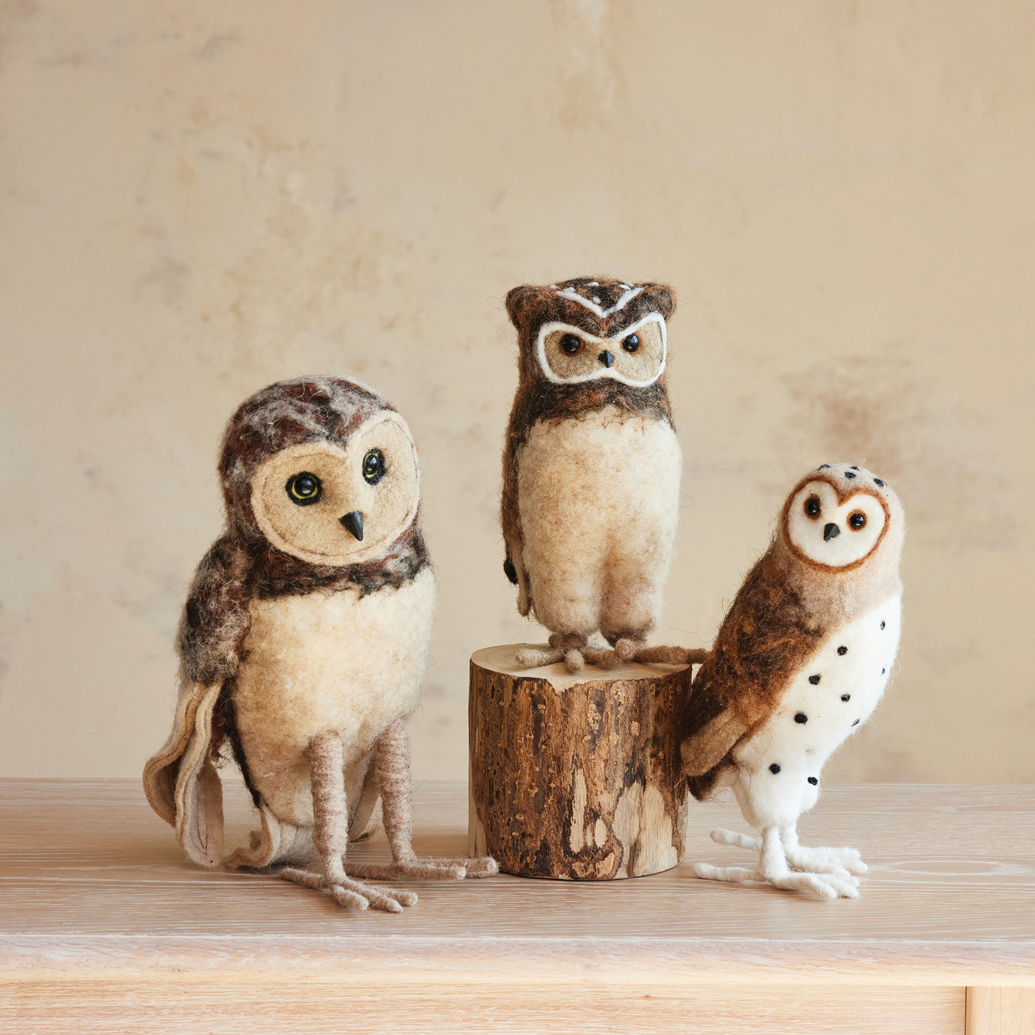 Catalog Name: 4"L x 4-1/4"W x 9-1/2"H Handmade Wool Felt Burrowing Owl, Multi Color