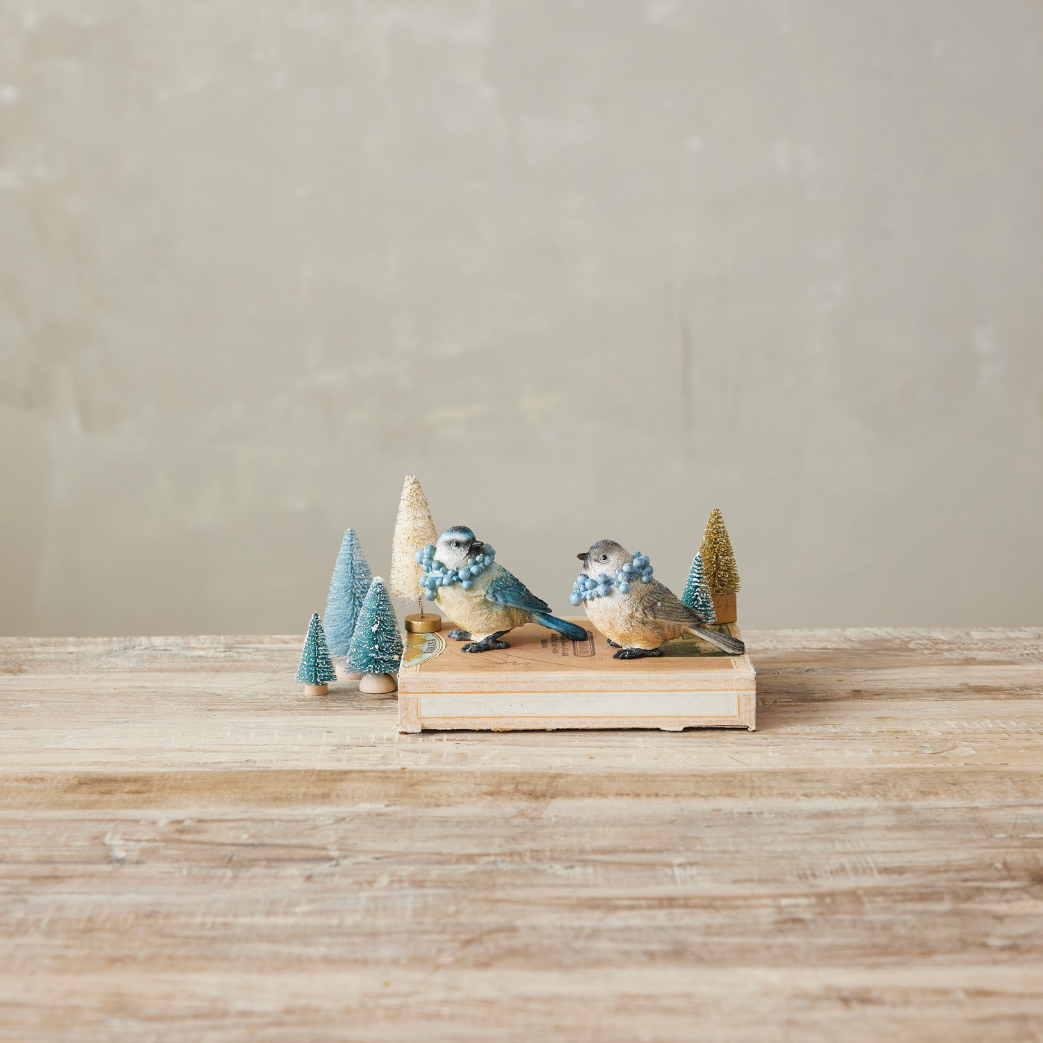 4-1/4"L x 2"W x 3"H Resin Bird with Berry Wreath, 2 Styles