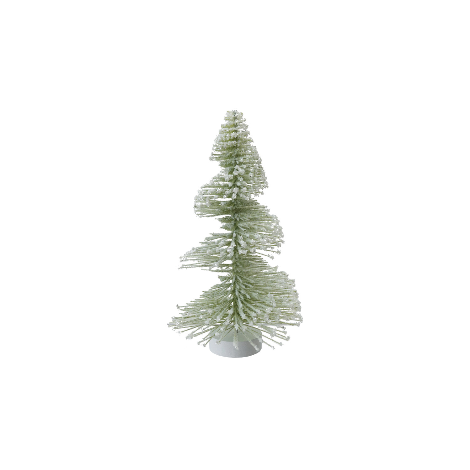 Plastic Bottle Brush Tree with Wood Base, Snow Finish, Sage Color