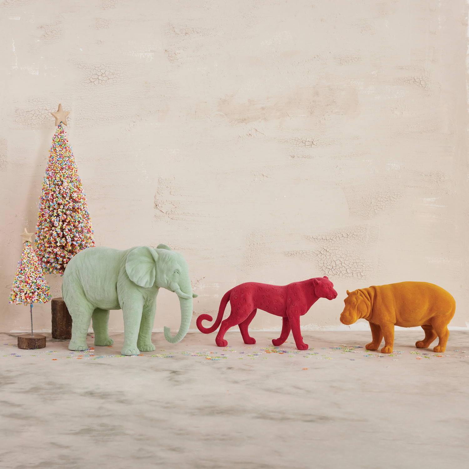 10-1/2"L x 4"W x 7-1/2"H Flocked Resin Elephant, Mint Color