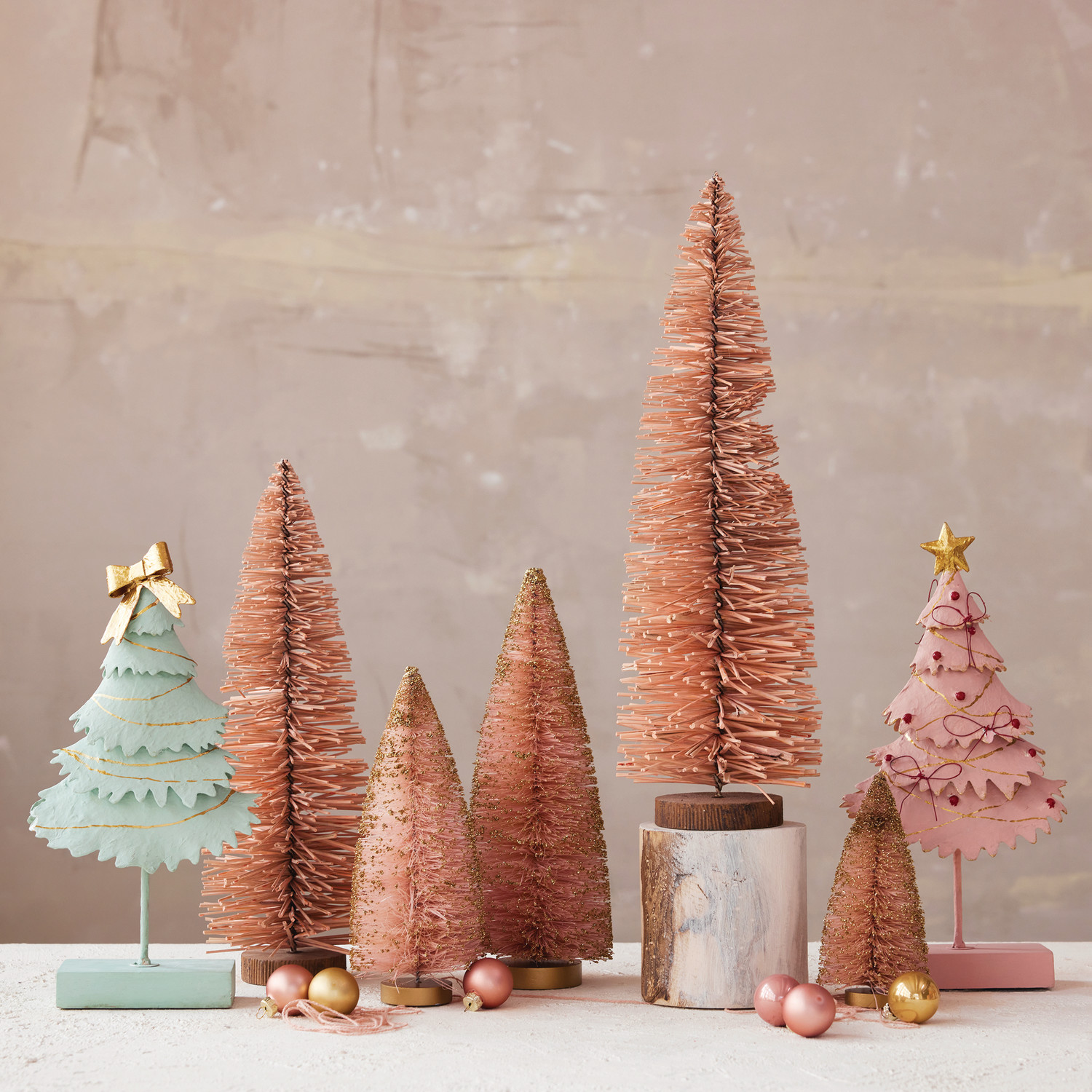 Catalog Name: 5-1/2" Round x 15"H Sisal Bottle Brush Tree w/ Wood Base, Pink