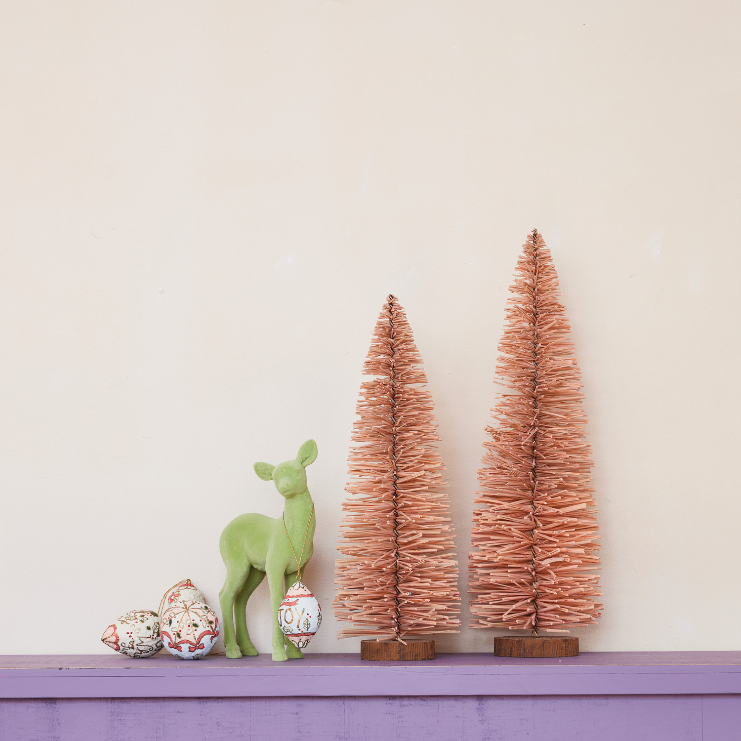 5-1/2" Round x 15"H Sisal Bottle Brush Tree with Wood Base, Pink