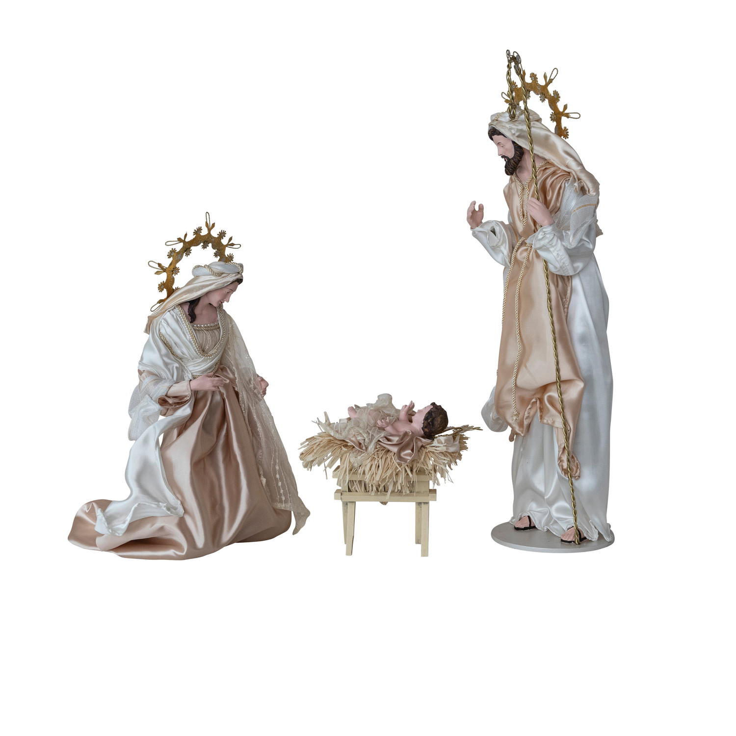 Catalog Name: 10"H - 36"H Handmade Fabric, MDF & Resin Holy Family, Multi Color, Set of 3, Truck Ship