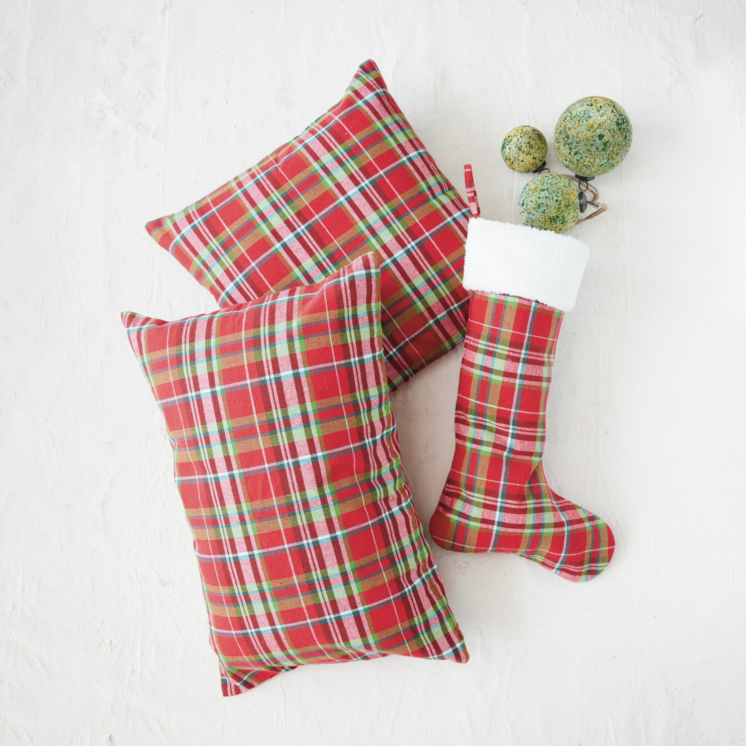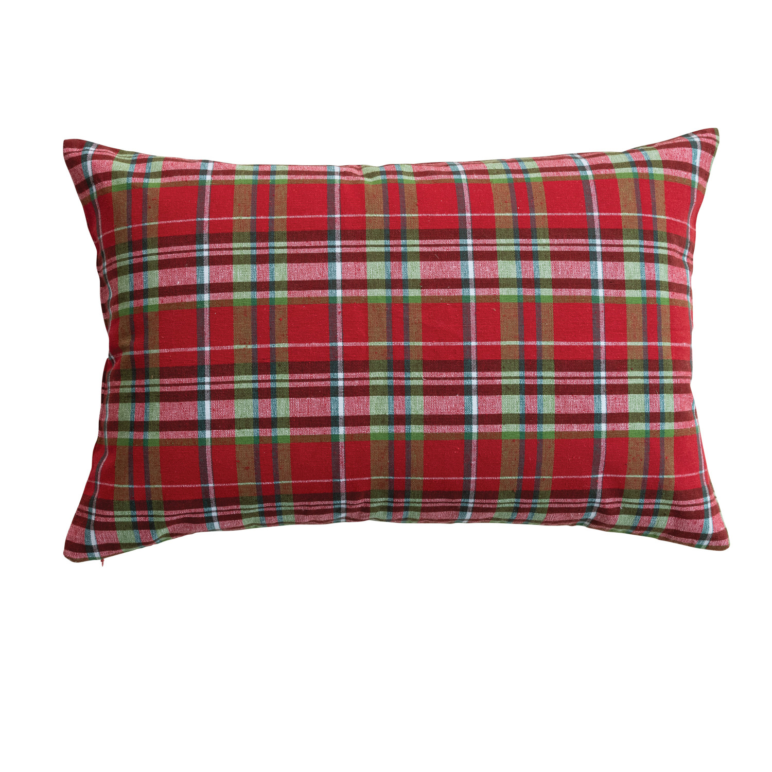 Woven Cotton Lumbar Pillow with Tartan Plaid Pattern