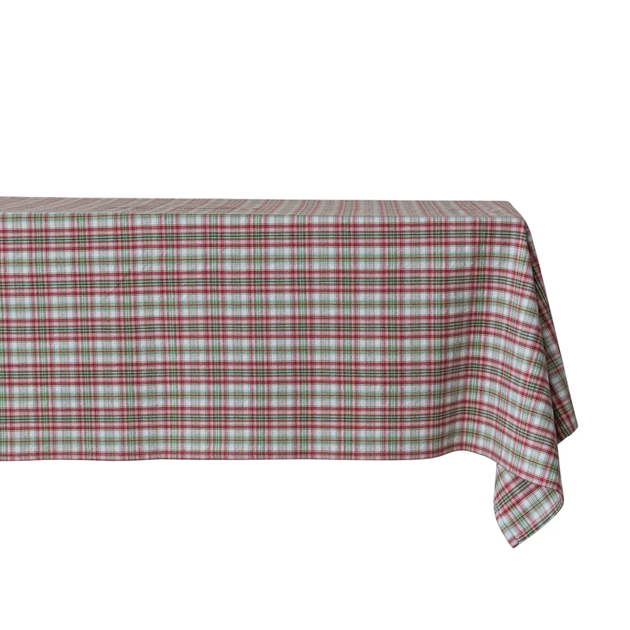 Catalog Name: 84"L x 60"W Woven Cotton Table Cloth w/ Plaid Pattern, Multi Color