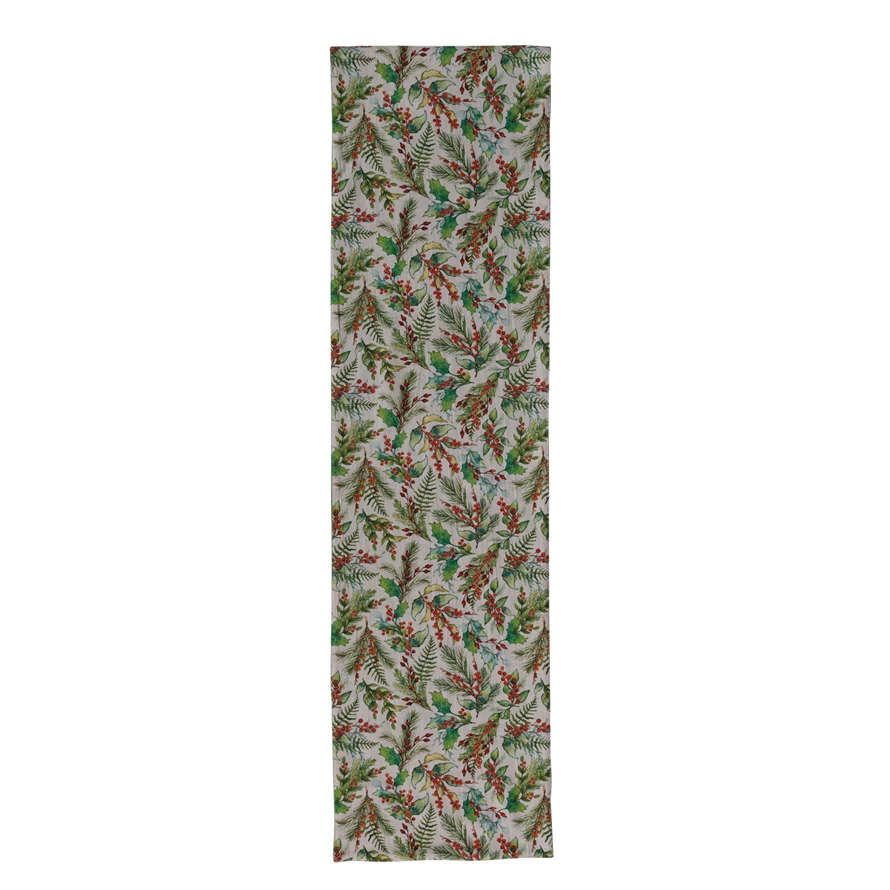 Catalog Name: 108"L x 14"W Cotton Chambray Printed Two-Sided Table Runner w/ Seasonal Botanicals Pattern & Waffle Weave Back, Multi Color ©