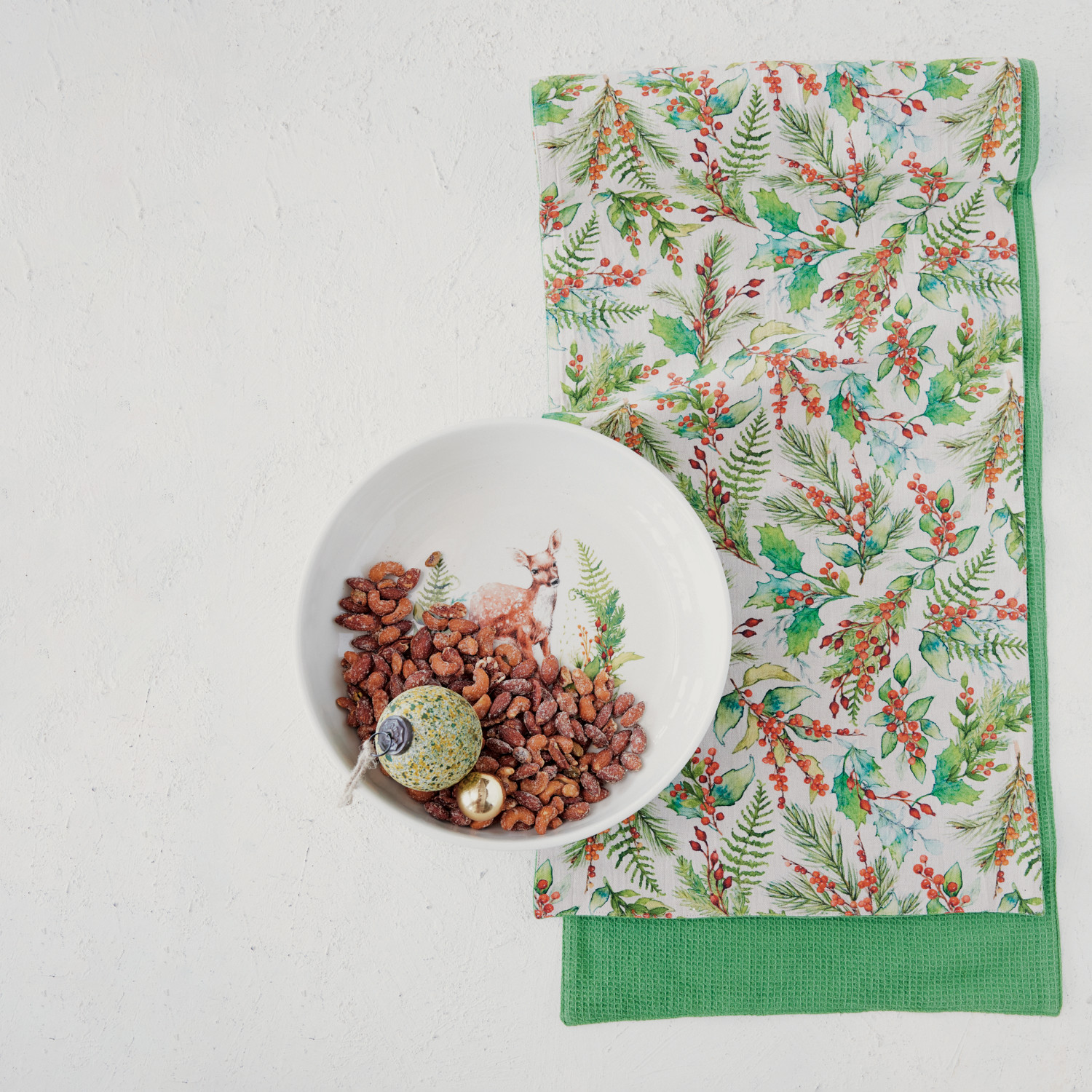 Cotton Chambray Printed Two-Sided Table Runner with Waffle Weave Back ©