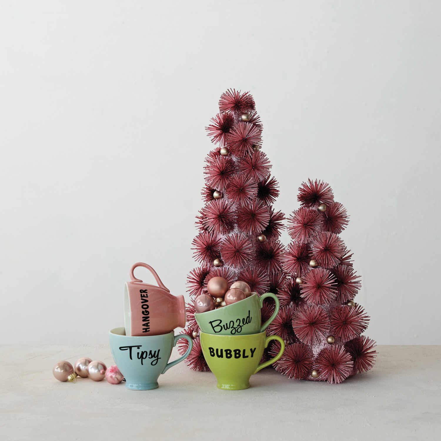 Catalog Name: 4-1/4" Round x 3-1/2"H 12 oz. Stoneware Footed Mug w/ Word, Multi Color, 4 Styles ©