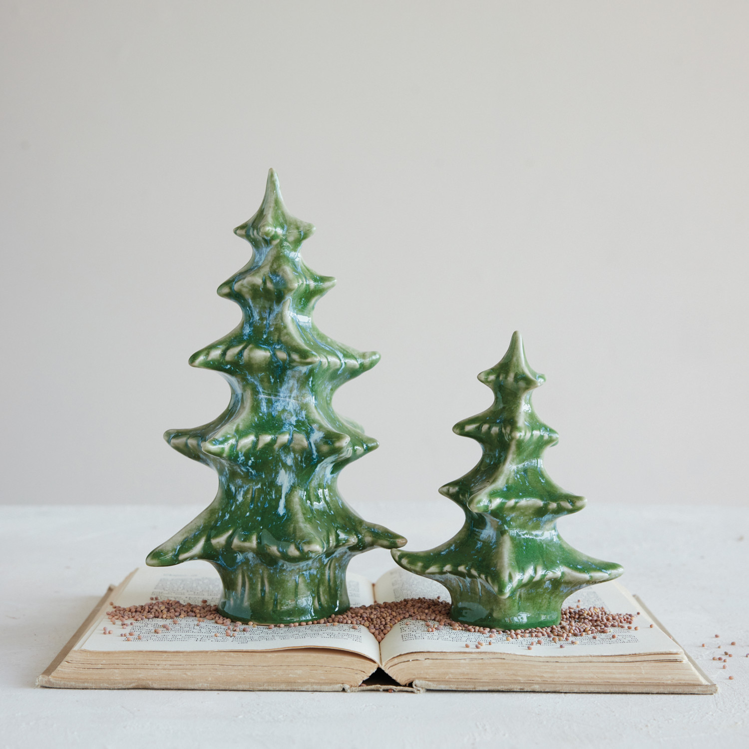 Catalog Name: 5-1/2"L x 4-1/2"W x 8"H Stoneware Tree, Reactive Glaze, Green (Each One Will Vary)