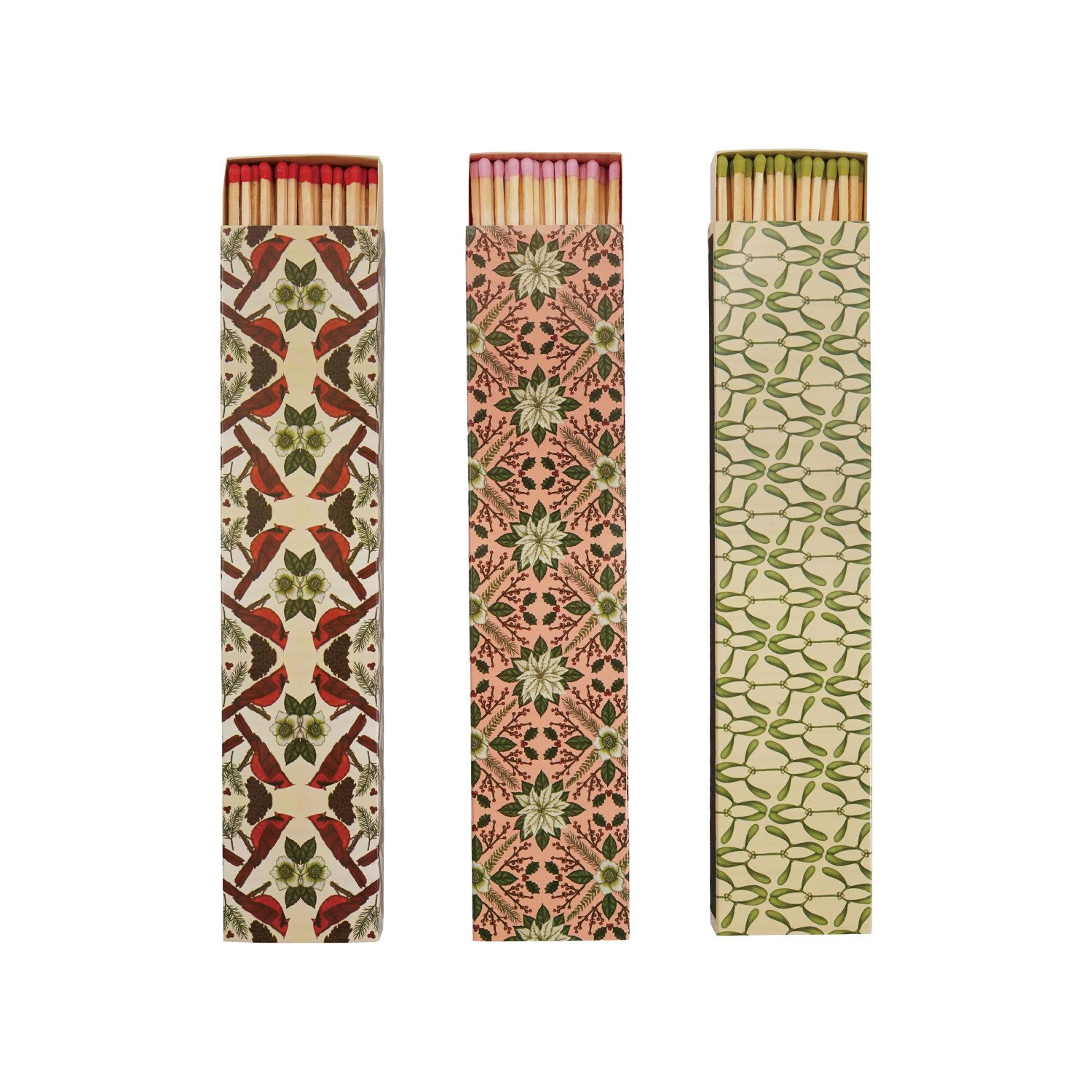 Safety Fireplace Matches in Matchbox with Seasonal Botanical Pattern, 3 Styles ©