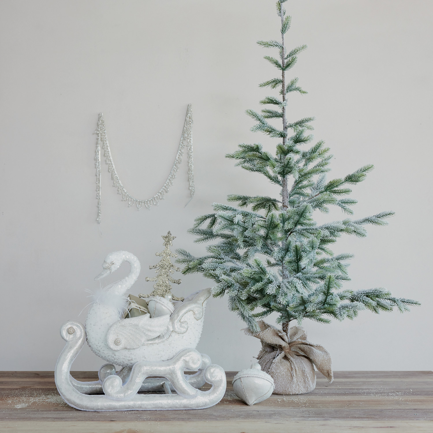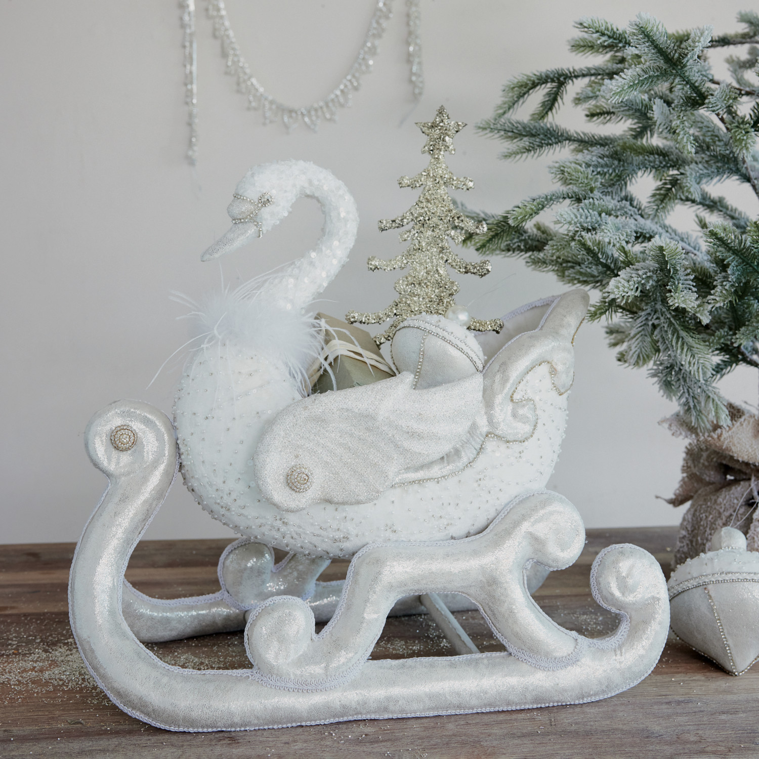 Foam & Fabric Swan Shaped Sleigh with Glitter, Sequins & Feathers, White