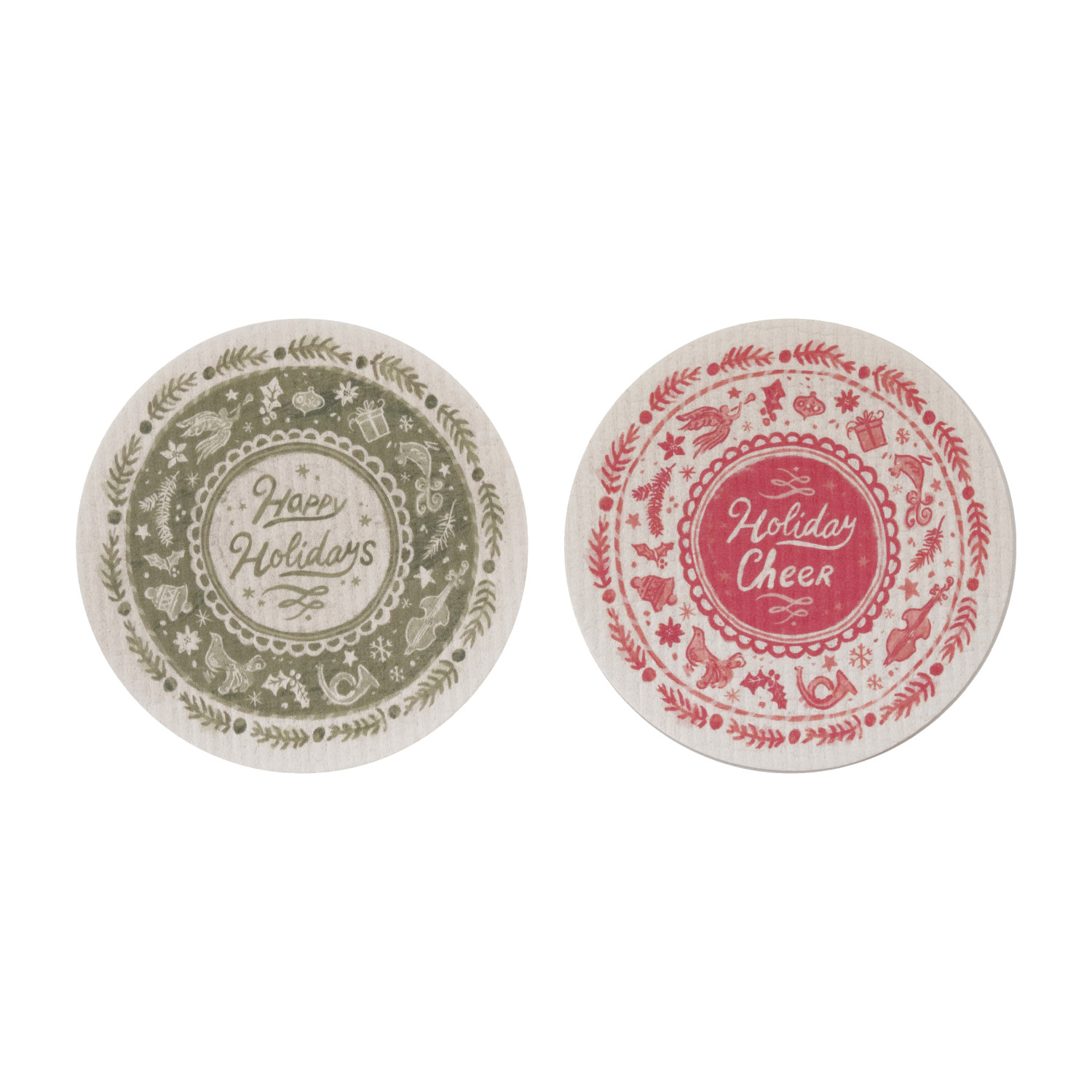 Catalog Name: 6-1/2" Round Reusable Cellulose Sponge Cloth w/ Holiday Design & Saying, 2 Styles ©