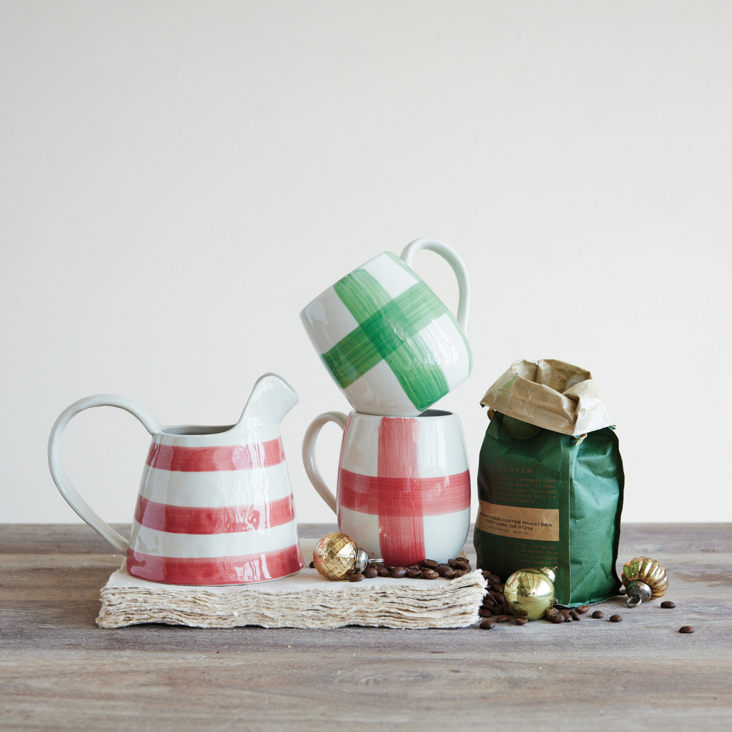 16 oz. Hand-Painted Stoneware Mug with Plaid Pattern, 2 Colors (Each One Will Vary)