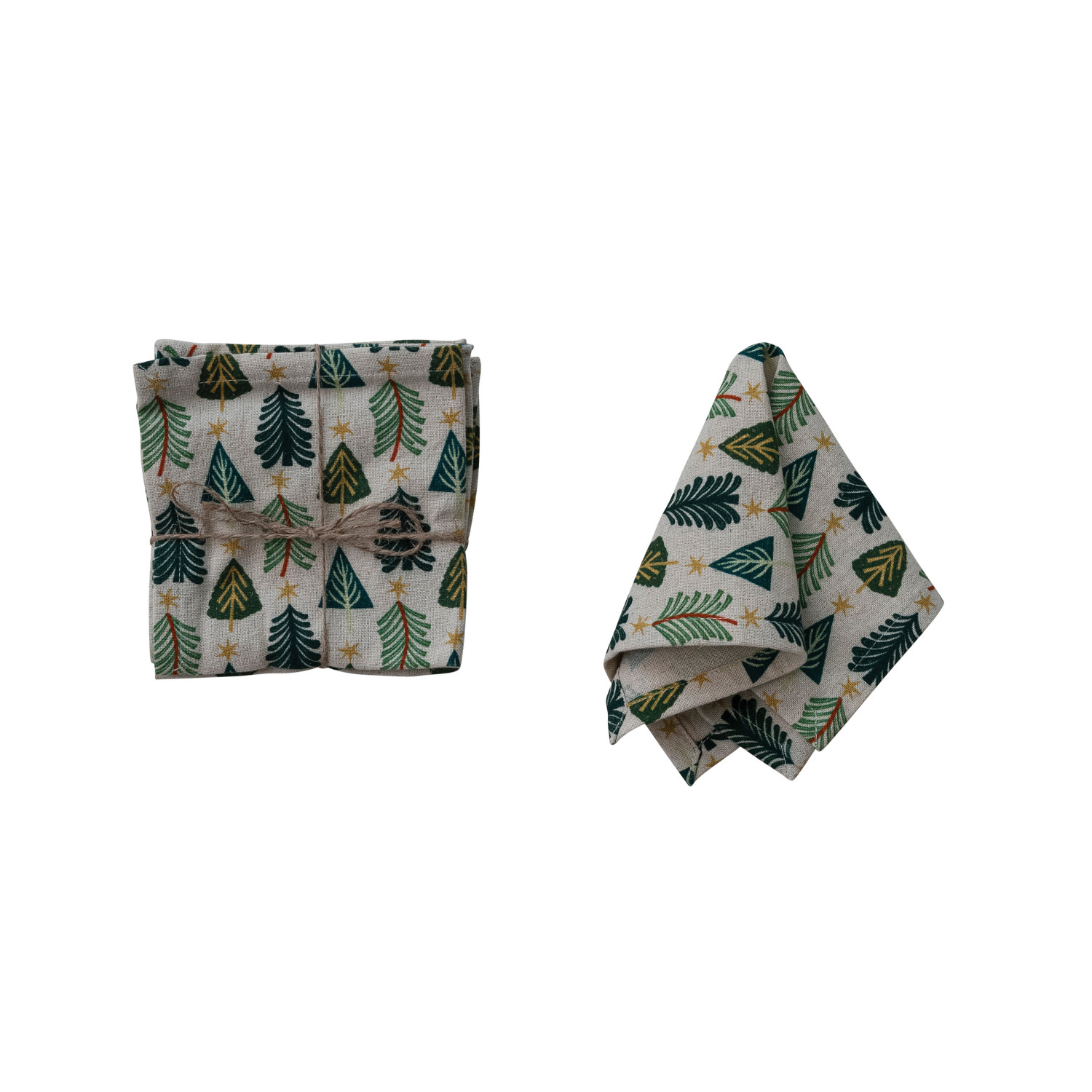 Catalog Name: 10" Square Cotton & Linen Printed Cocktail Napkins w/ Tree Pattern, Multi Color, Set of 4 Tied w/ Jute ©