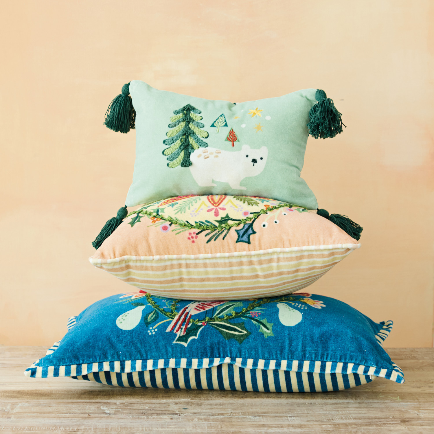 Cotton Velvet Printed Lumbar Pillow with Embroidered Botanicals ©